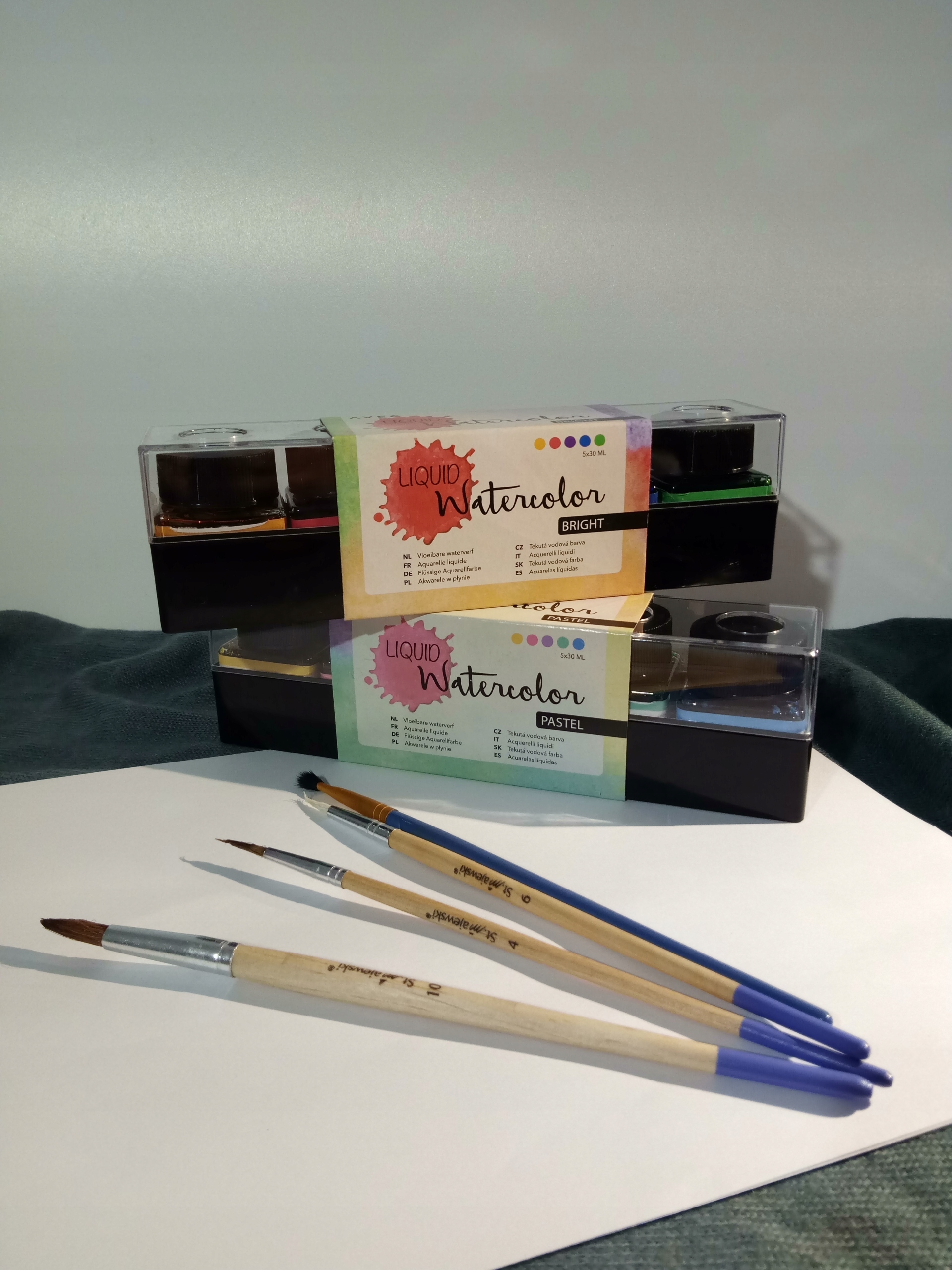 Namaluj najpiękniejsze kolorowe obrazy za pomocą płynnych akwareli o różnych barwach.