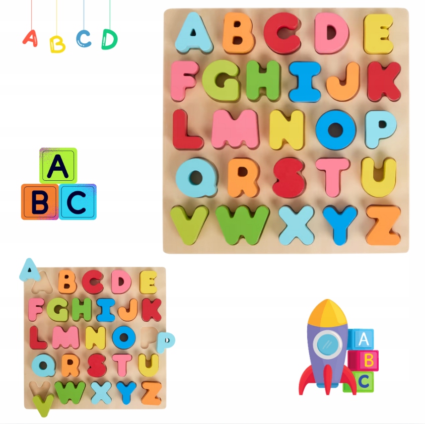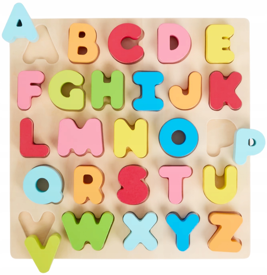 Drewniana edukacyjna układanka z literkami marki Mini Matters to idealna zabawka dla najmłodszych, która łączy naukę z zabawą.