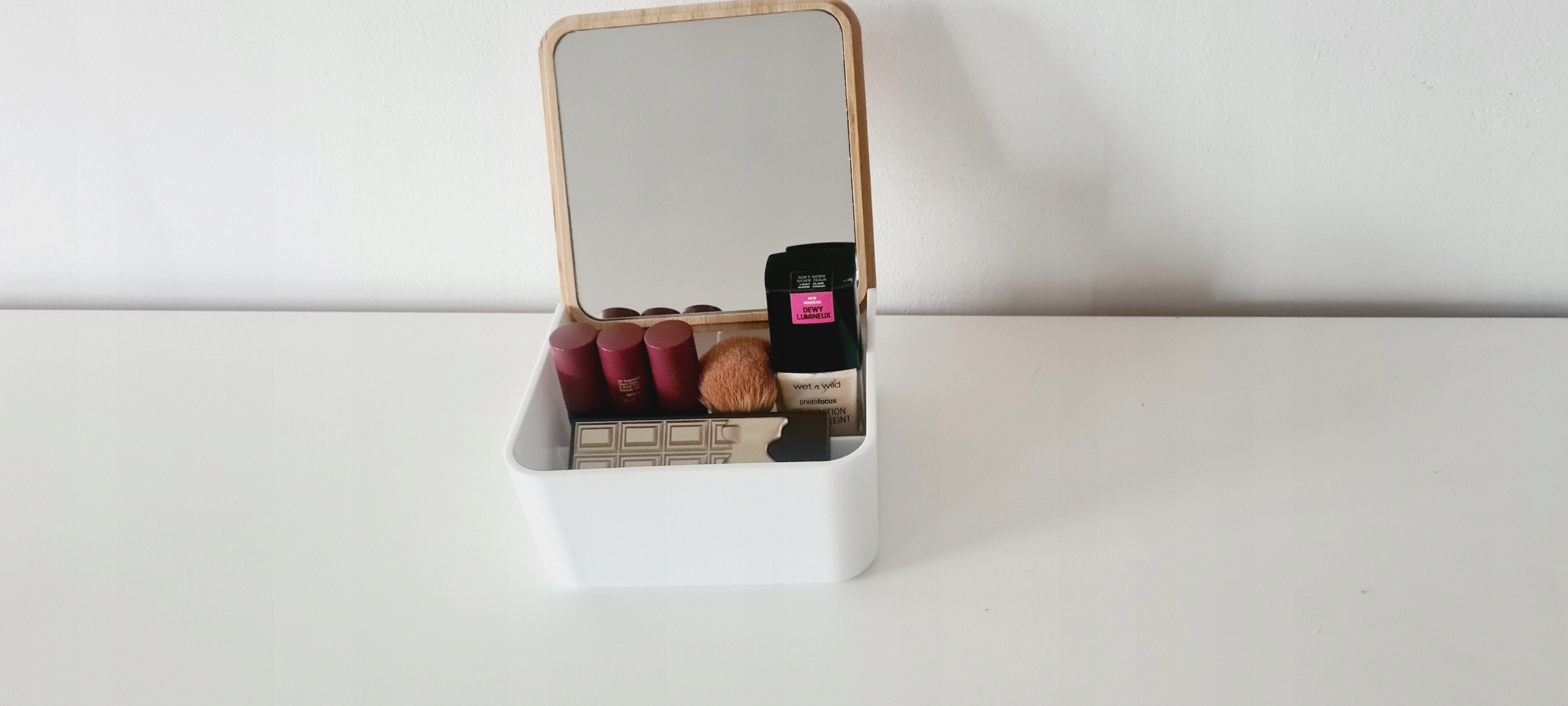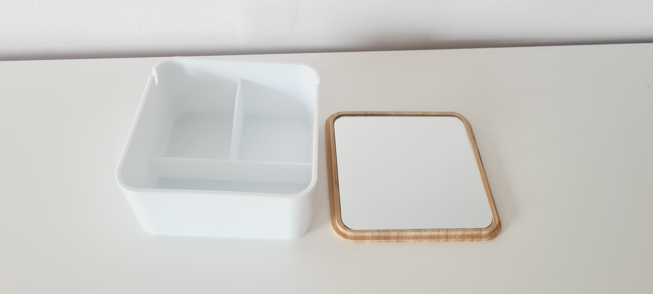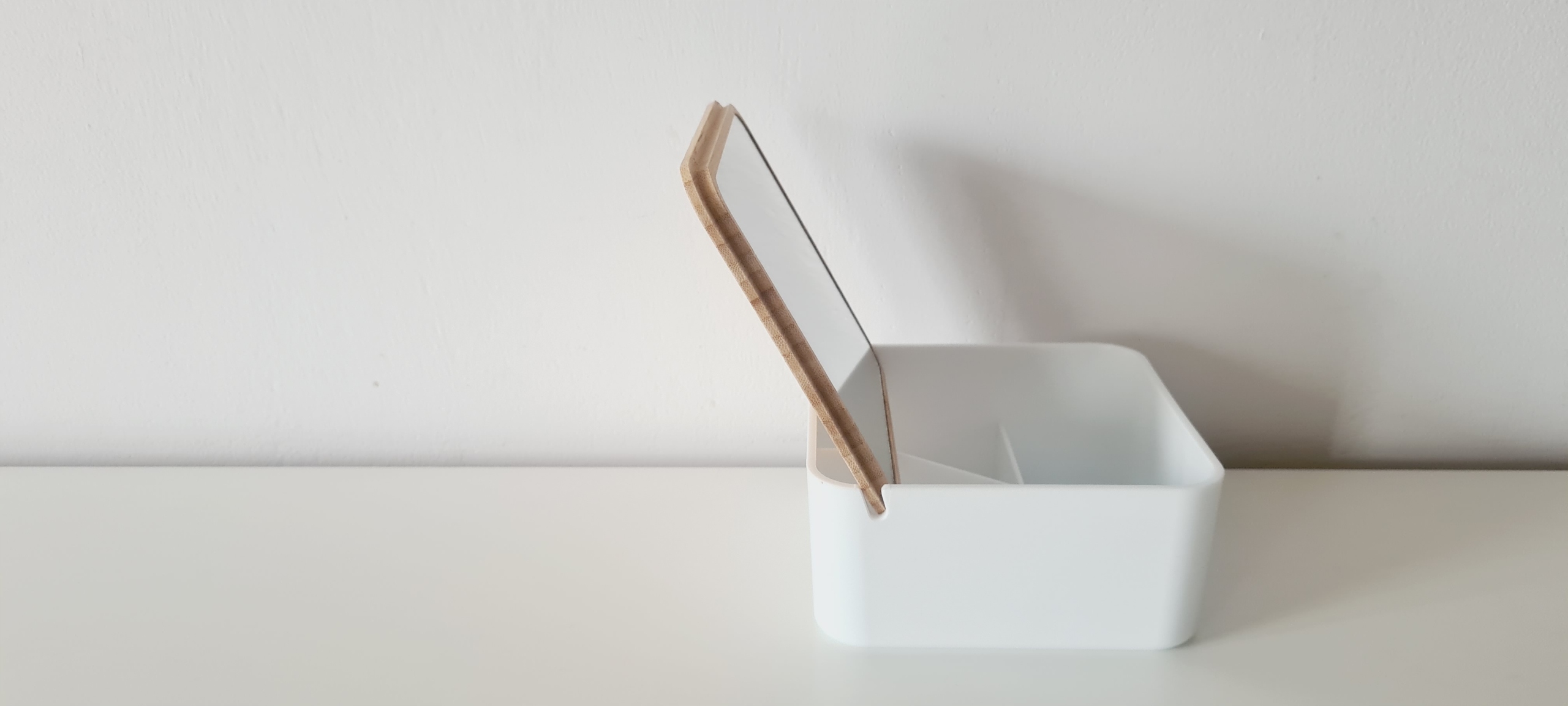 Bambusowy pojemnik do przechowywania z lusterkiem Biały