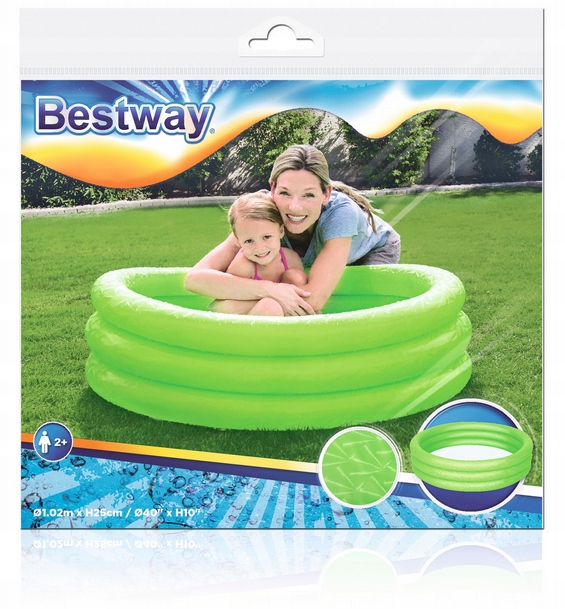 Kolorowy, dmuchany basen z morską kolorową grafiką firmy Bestway o średnicy 102 cm zapewni wiele frajdy każdemu małemu pływakowi w upalny dzień.