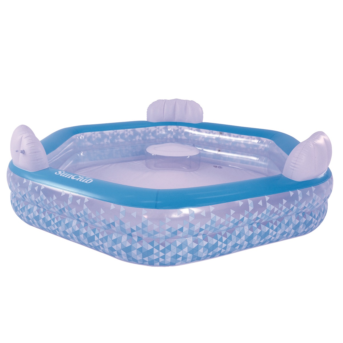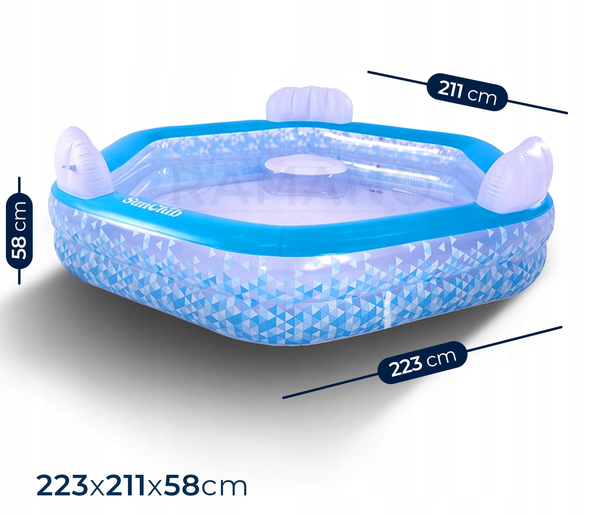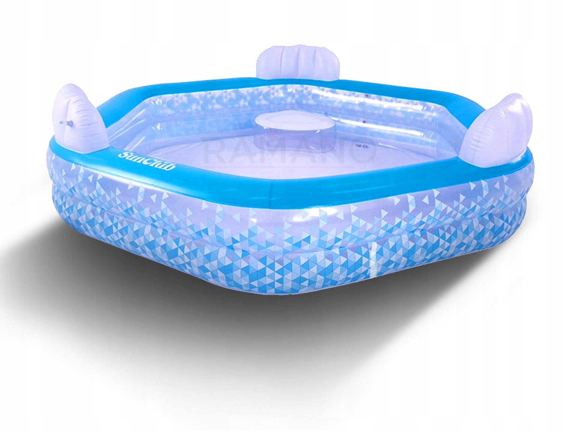 Wygodne siedziska w basenie oraz trzy nadmuchiwane poduszki - oparcia, dla komfortowego wypoczynku