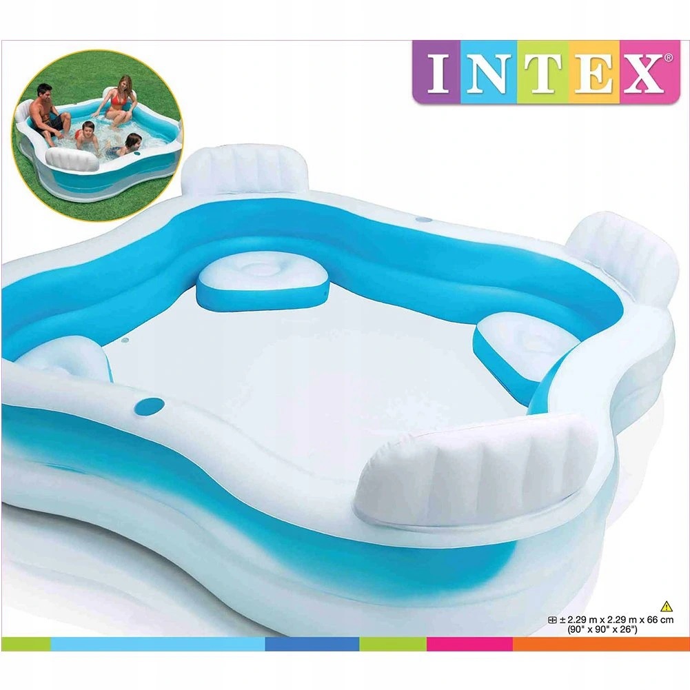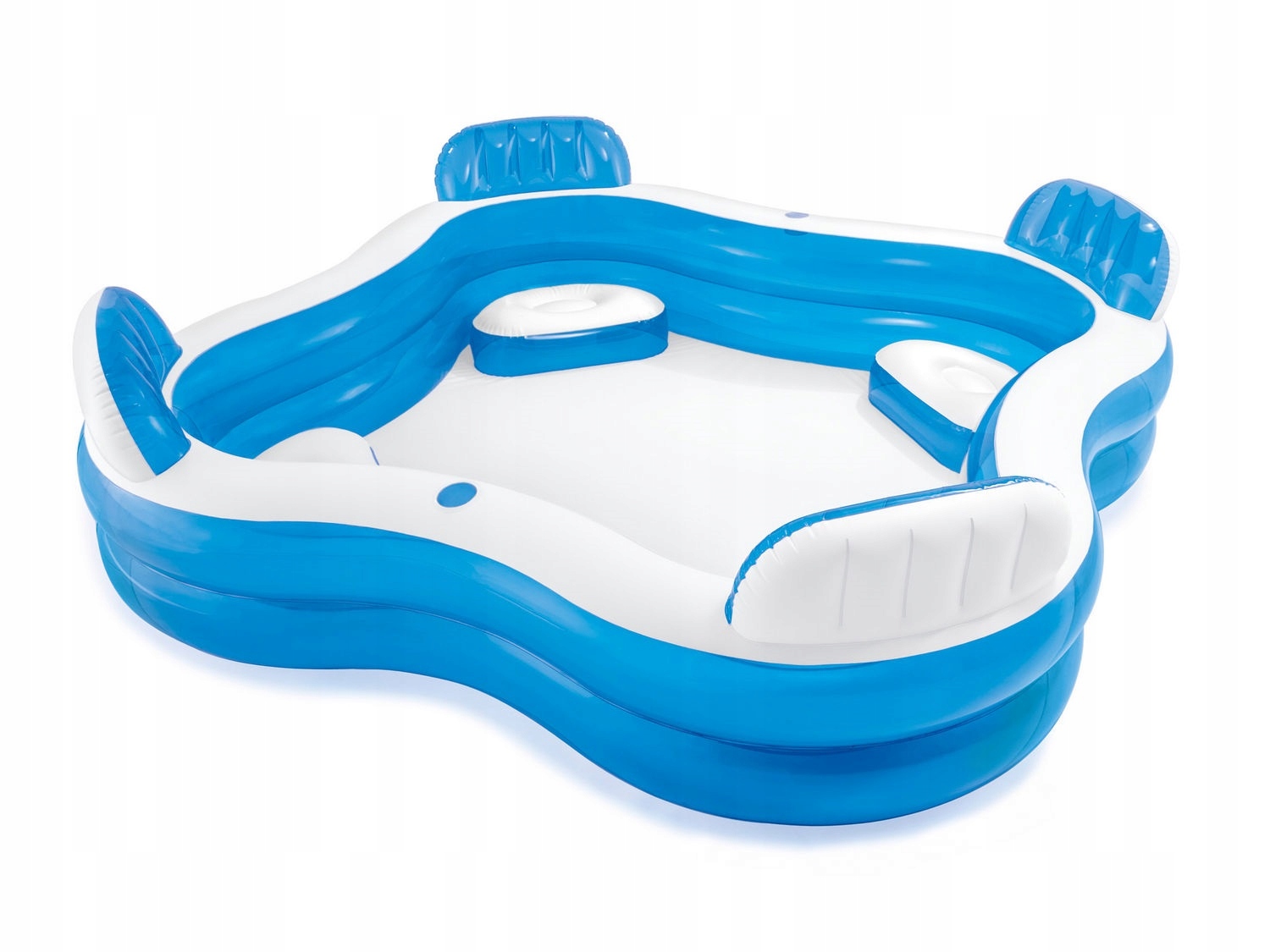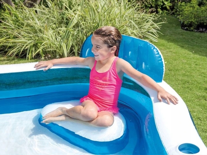 Dmuchany basen ogrodowy z siedzeniami, to model który pomieści 4 dorosłe osoby lub dzieci. Basen jest wykonany z wytrzymałego tworzywa PVC i w przyjemnej dla oka kolorystyce. Produkt posiada cztery miejsce siedzące z oparciem - po jednym w każdym z czterech narożników. Ten nadmuchiwany basen jest idealny dla całej rodziny. Dzieci uwielbiają bawić się w basenie, a wbudowana część wypoczynkowa sprawia, że basen daje dodatkowe możliwości relaksu.