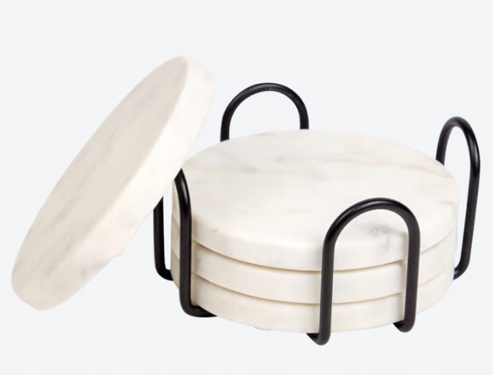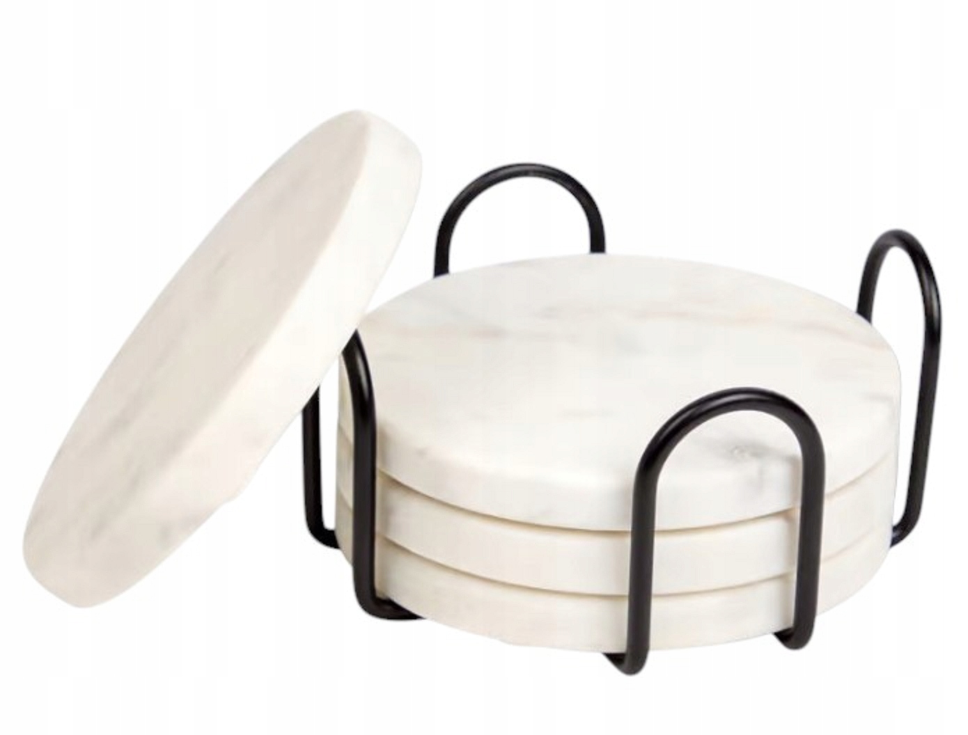 Eleganckie białe marmurowe podkładki pod kubek – zestaw 4 szt.