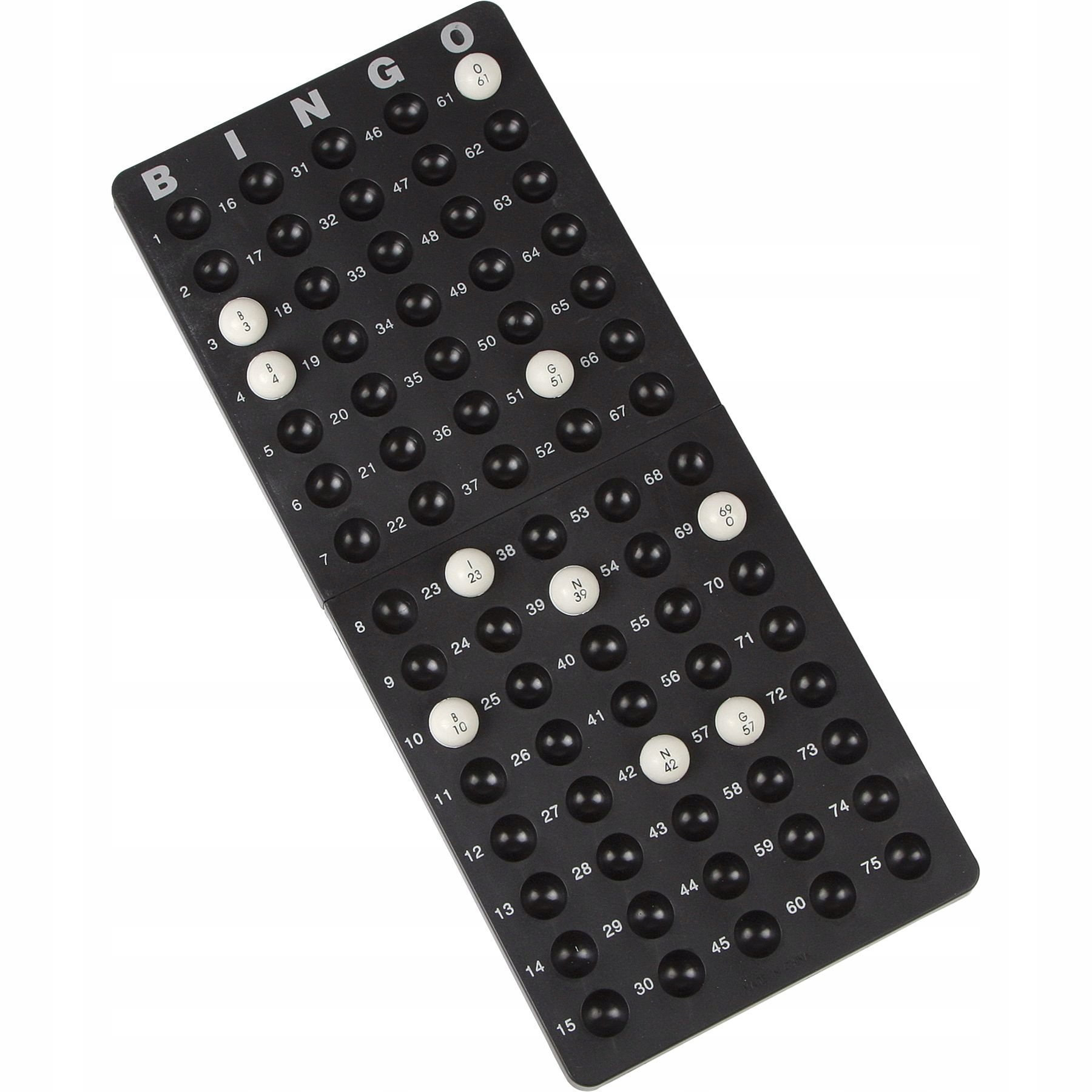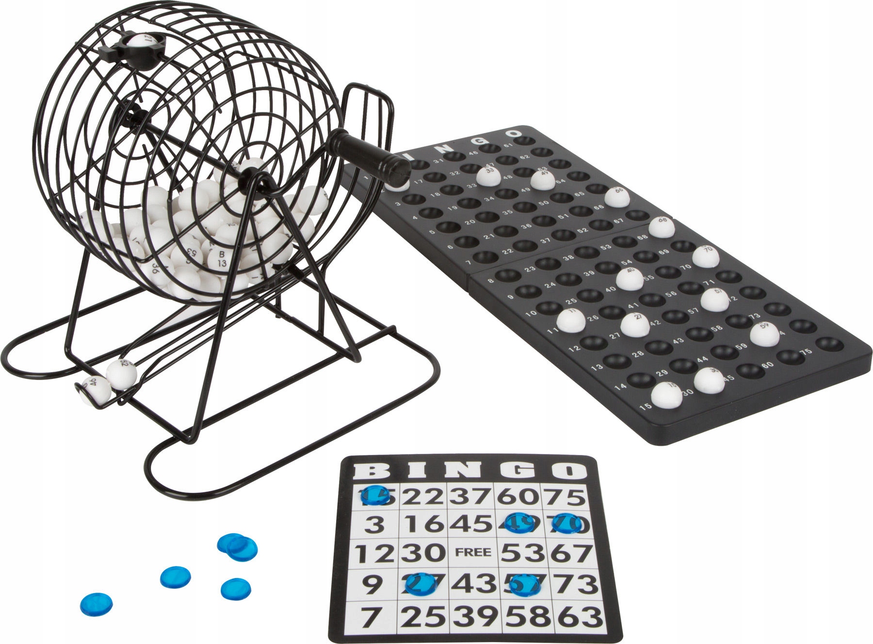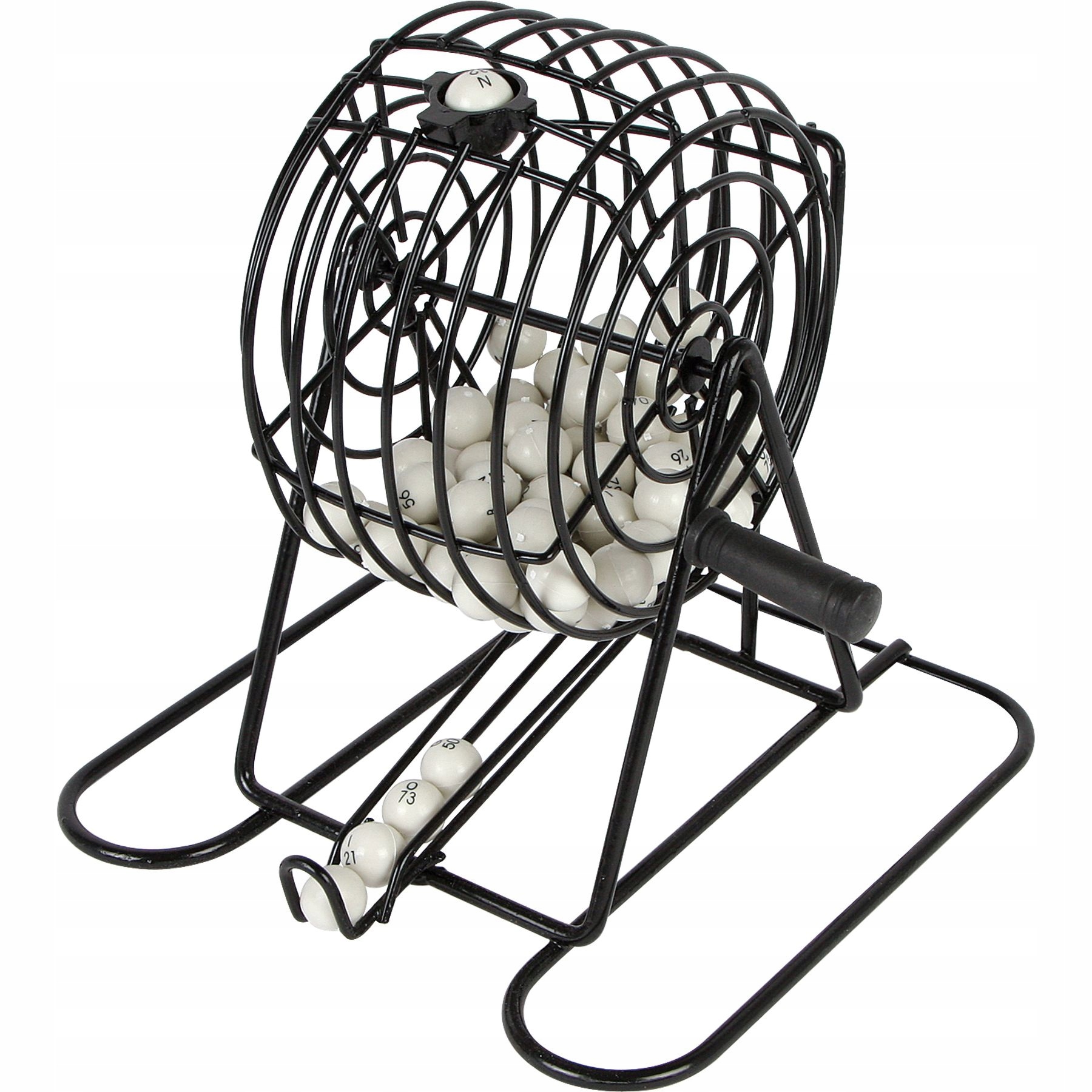 Bęben maszyny został wykonany z metalu i posiada specjalny tor do łapania wylosowanych kulek. W zestawie znajdziemy także 18 kart bingo, 75 plastikowych kuleczek z numerkami, 150 kolorowych nakładek do zakrywania trafionych cyfr (w pięciu kolorach) oraz planszę do układania wylosowanych kulek. Wszystko estetycznie wykonane i zapakowane w ładny, kolorowy karton.