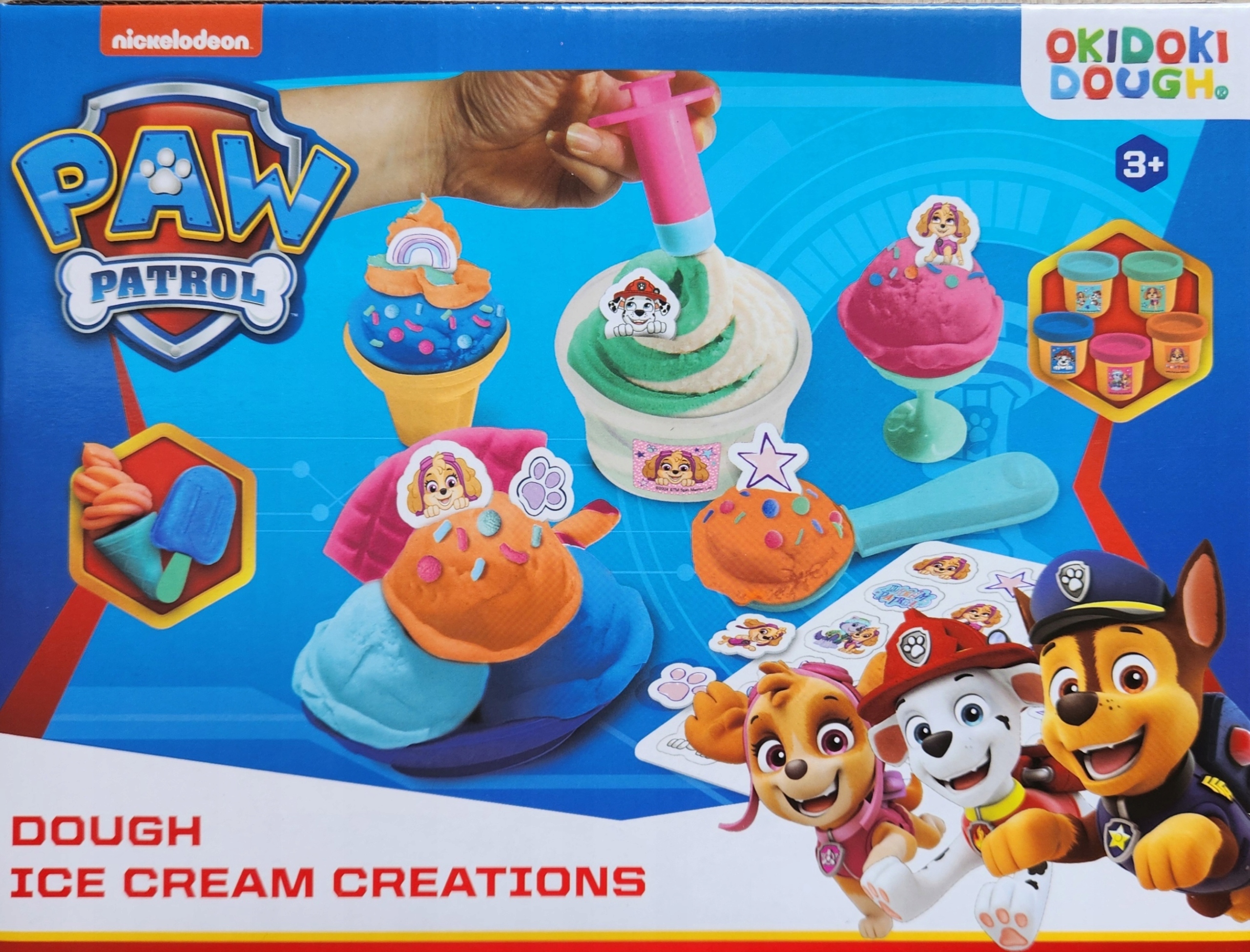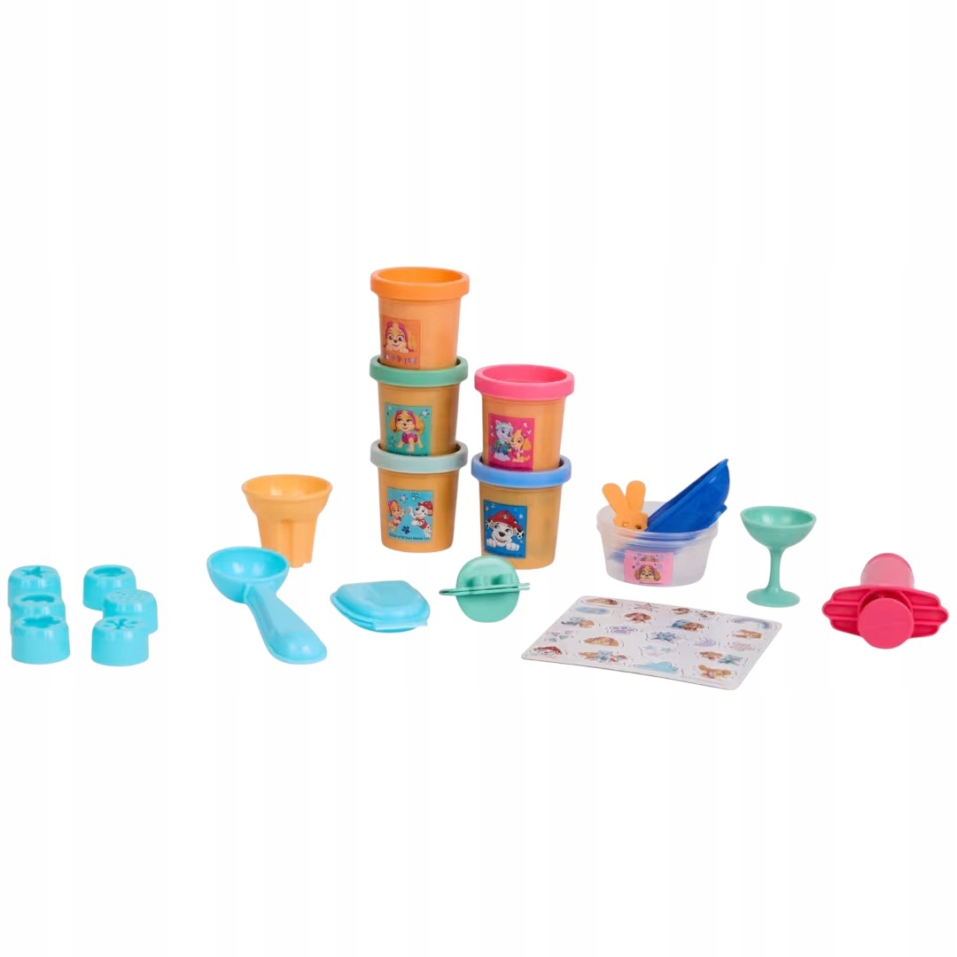 Ten kreatywny zestaw ciastoliny inspirowany popularną bajką Psi Patrol umożliwia dzieciom tworzenie lodowych deserów i zabawę w wyobraźni pełną ulubionych bohaterów. Zestaw zawiera 5 tubek kolorowej ciastoliny oraz różnorodne akcesoria, które pozwalają dzieciom tworzyć lodowe desery, gałki lodów, rożki i inne pyszne kreacje.