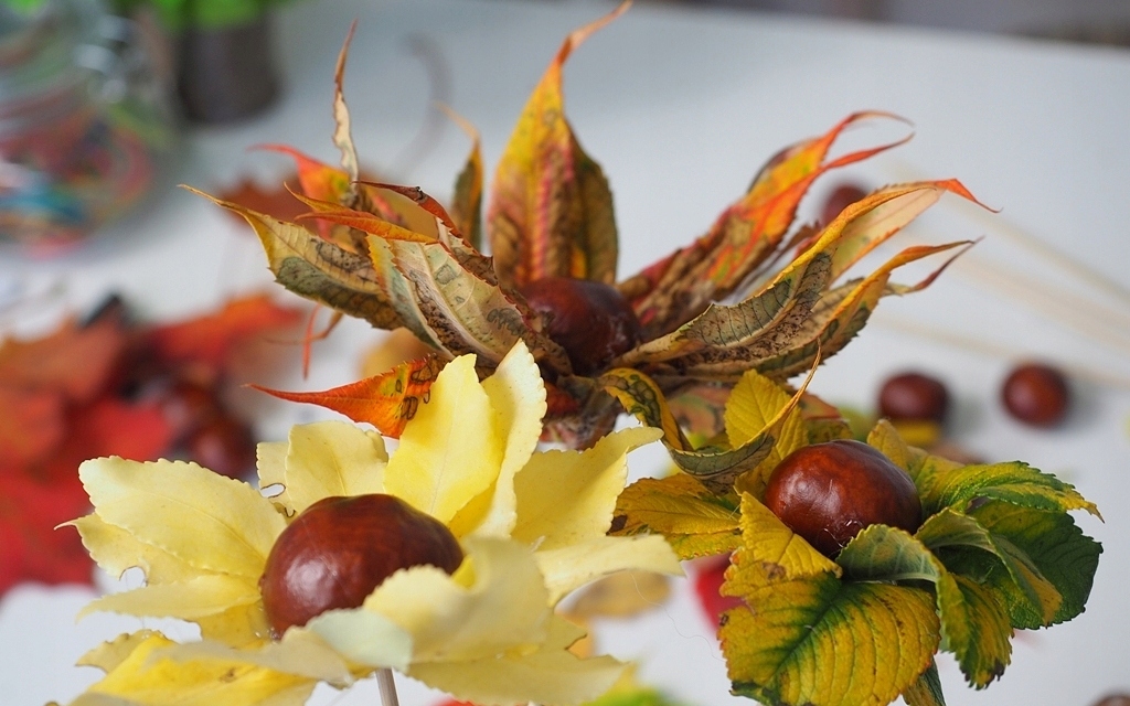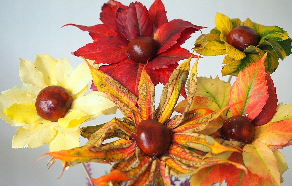 Warto ten nastrój przenieść także i do domu. Aby w pełni korzystać z uroków tej pory roku zaopatrzyć się trochę liści i już można wyczarować piękne, jesienne kompozycje z liści.