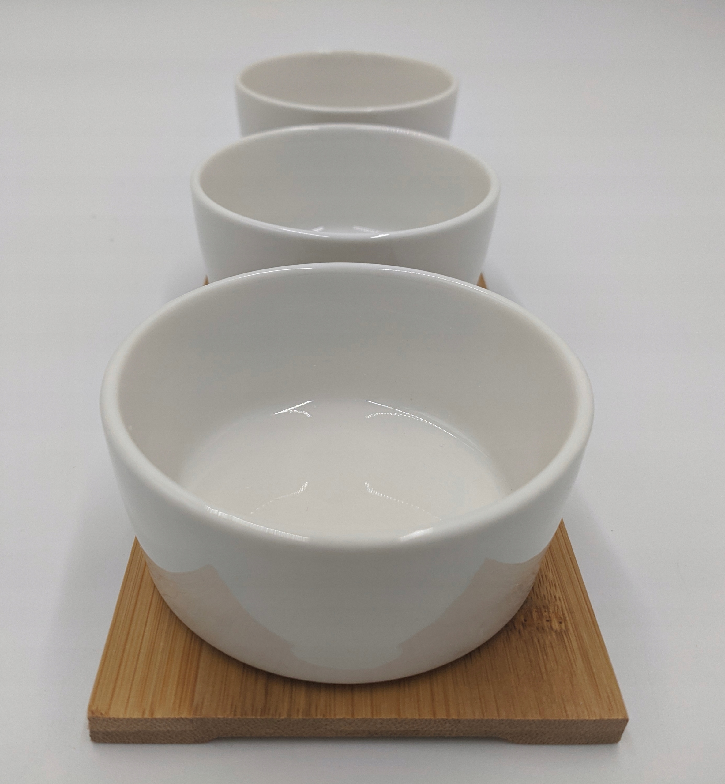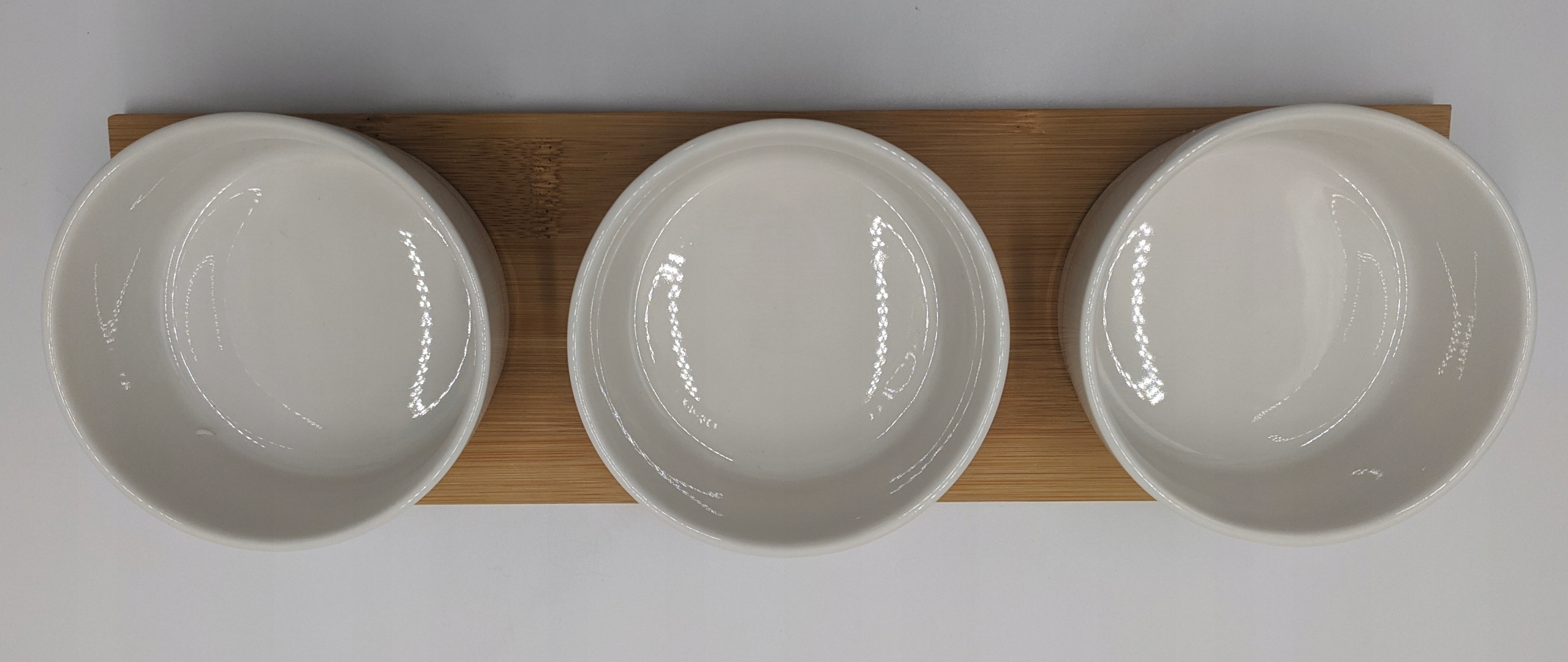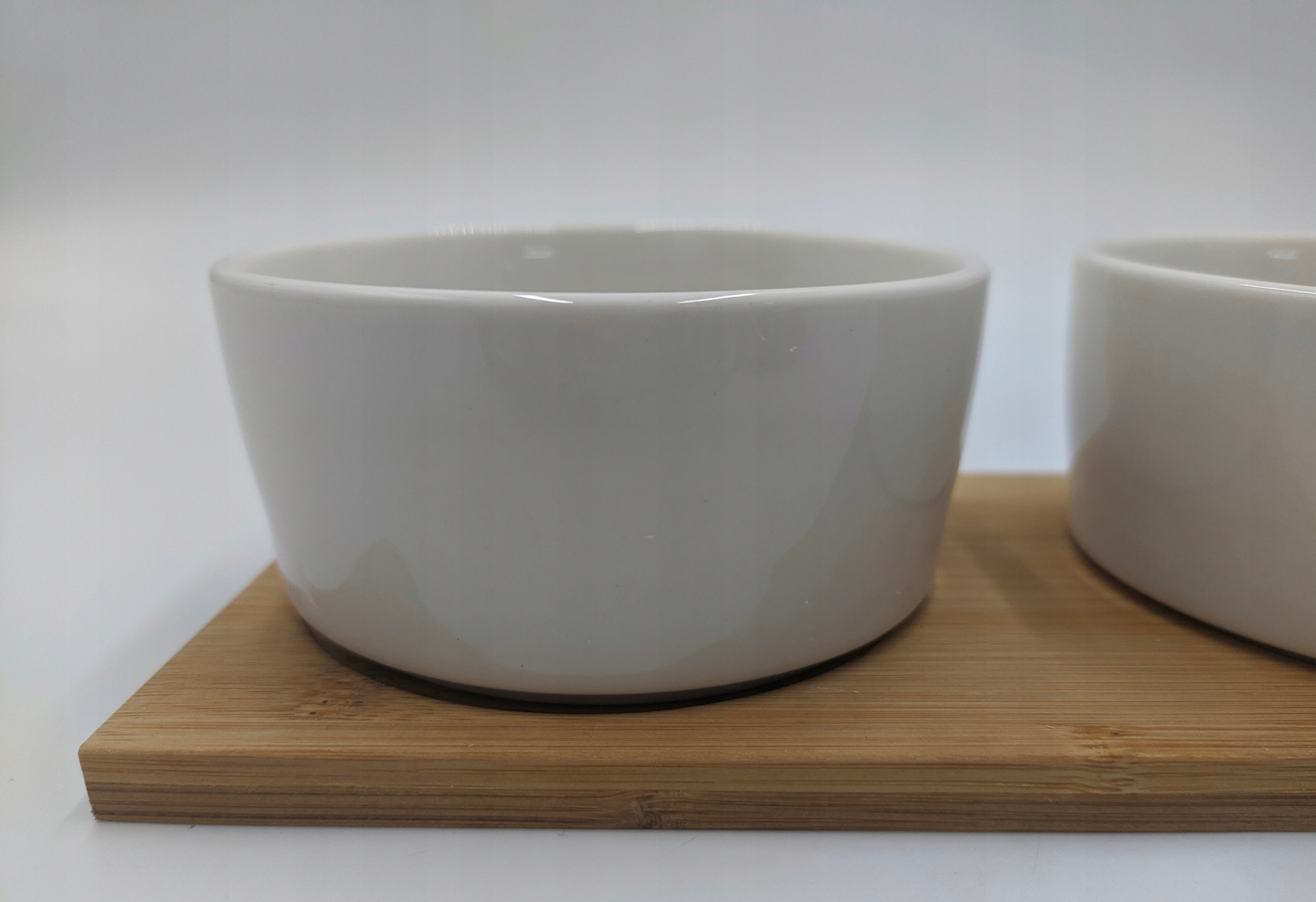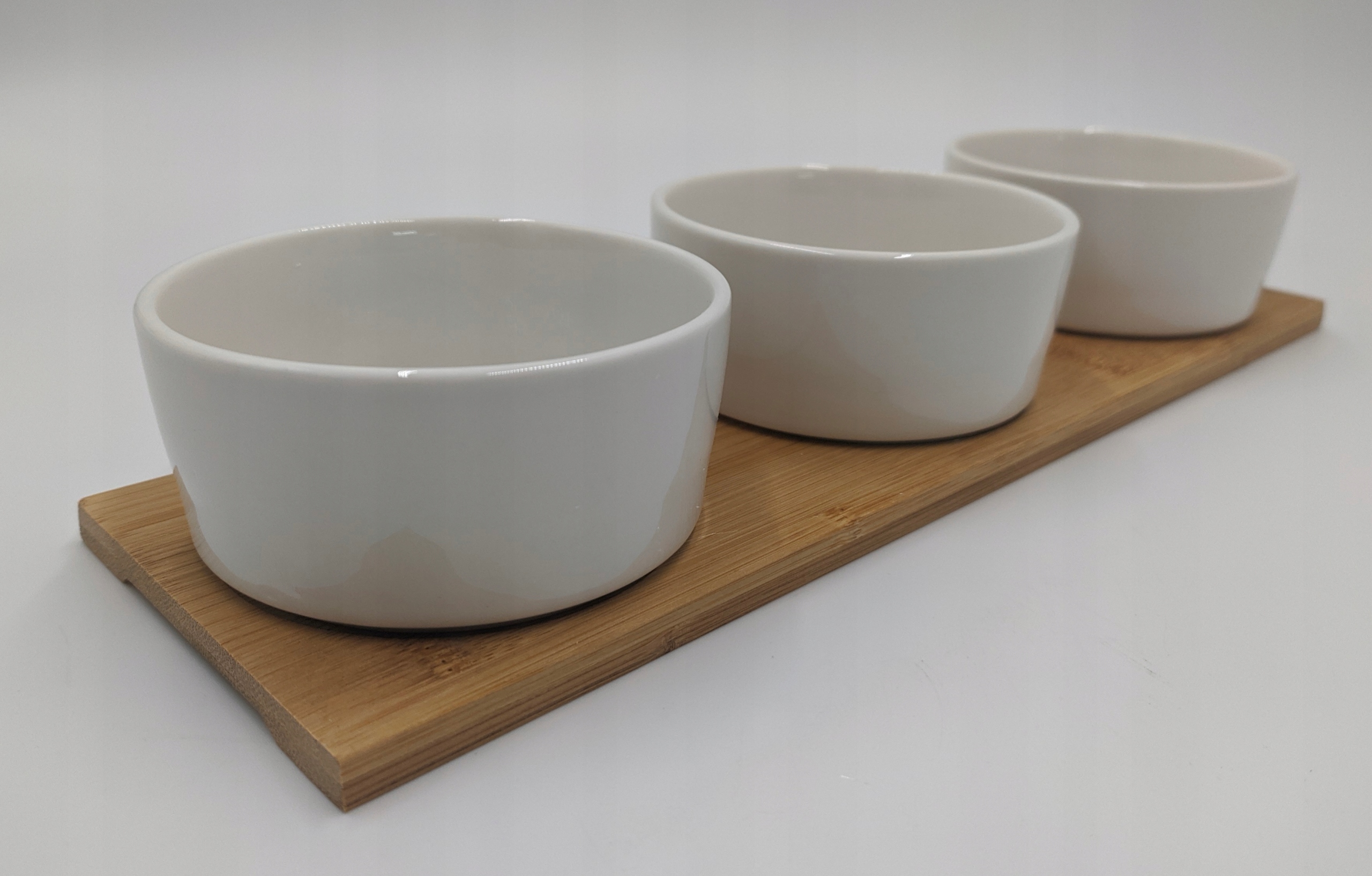 3 miseczki z błyszczącej porcelany (możliwość mycia w zmywarce)