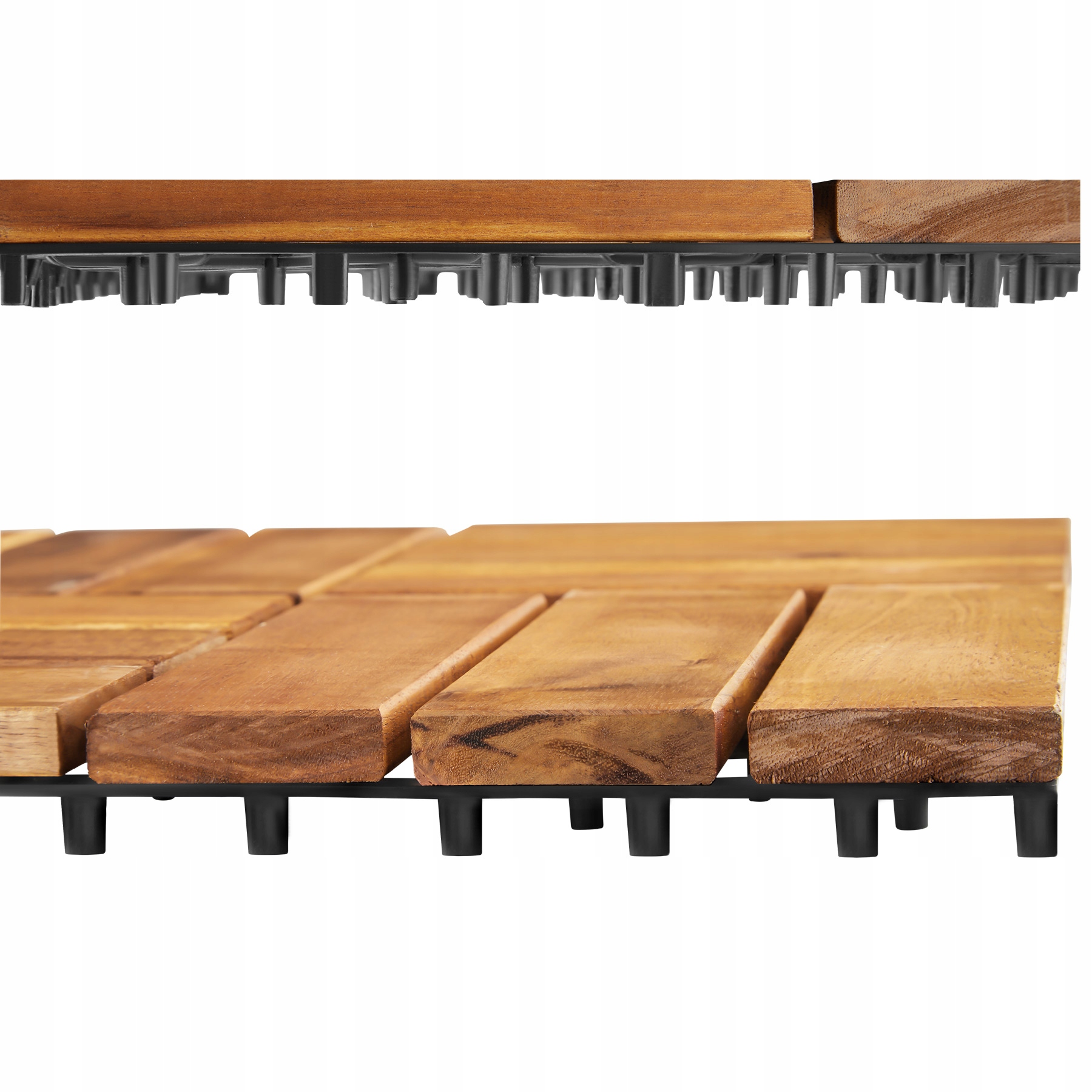 Płytki tarasowe są niezwykle łatwe w utrzymaniu, dzięki czemu masz więcej czasu na relaks, zamiast zajmować się czasochłonnym czyszczeniem. Wytrzymałe drewno akacjowe jest odporne na warunki atmosferyczne i trwałe, idealne do intensywnego użytkowania i zmieniających się warunków pogodowych.