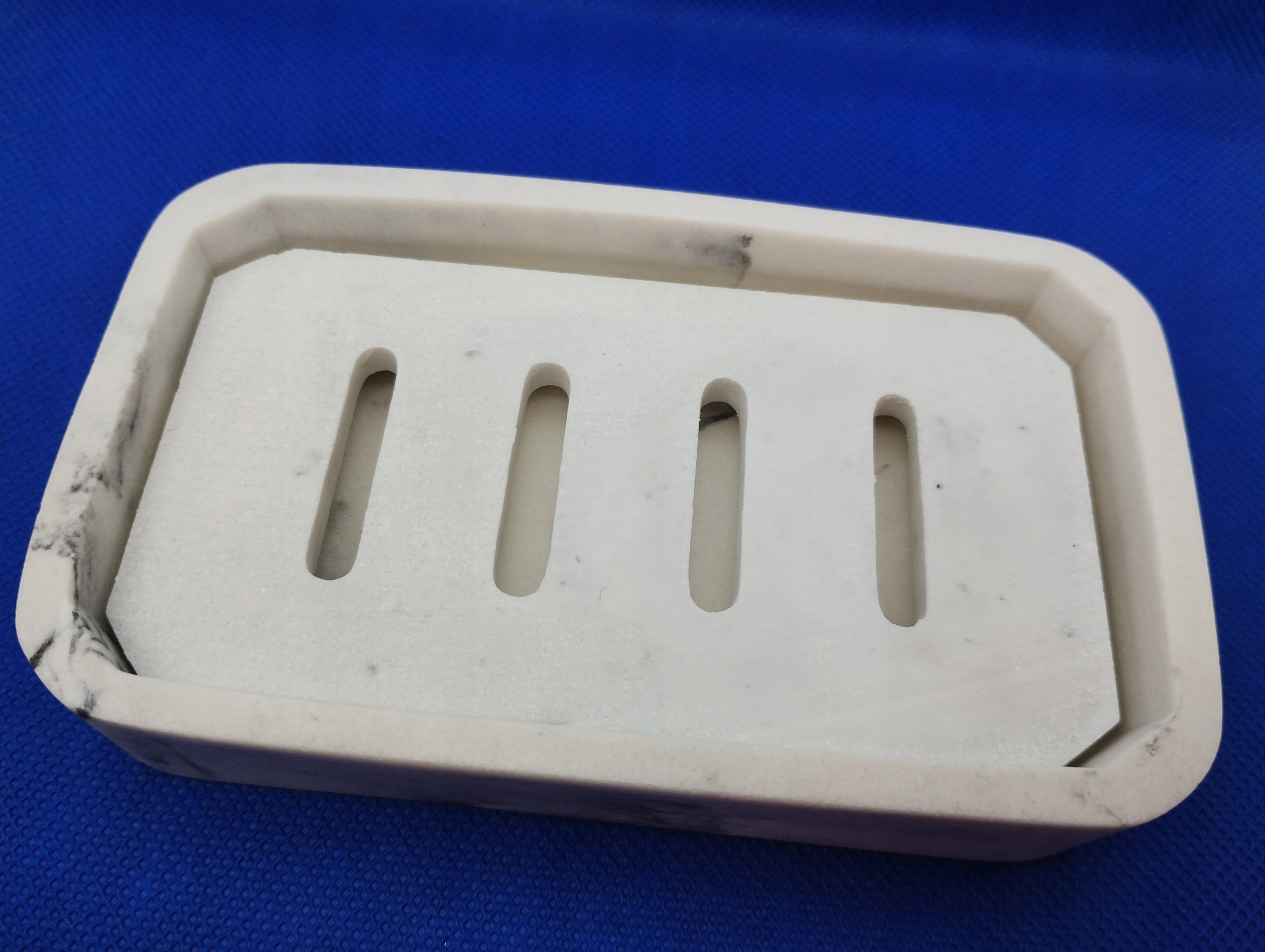✅ Materiał : tworzywo sztuczne przypominające wyglądem i wagą kamień, w kolorze białym z marmurowym wzorem.