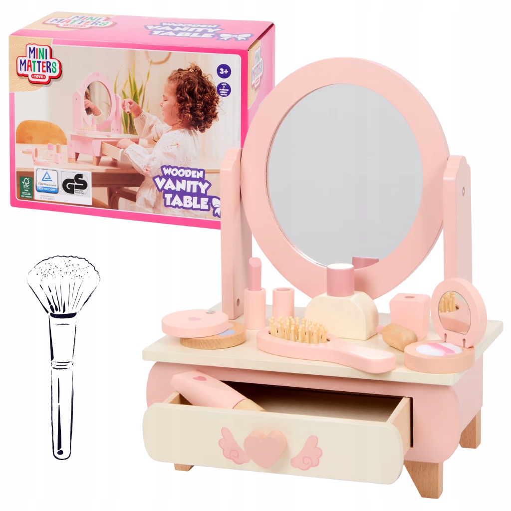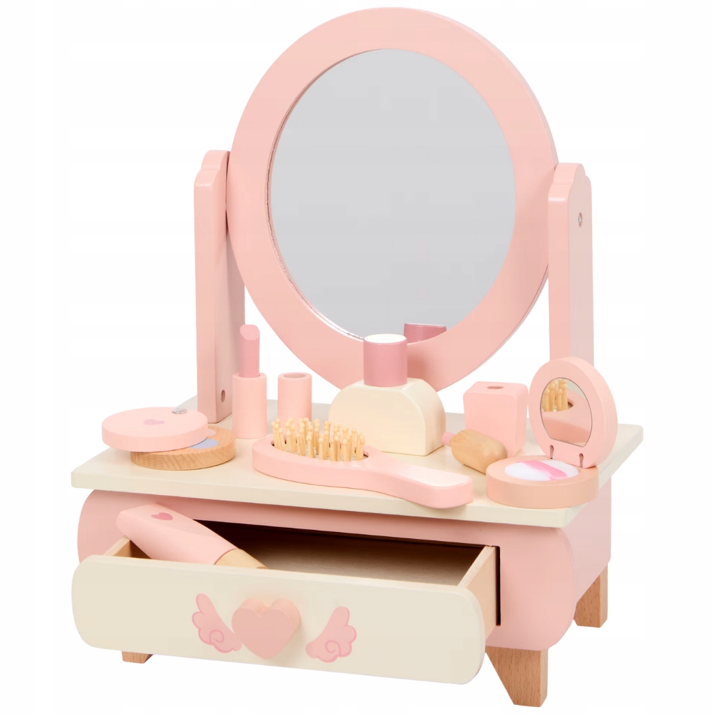 Różowa drewniana toaletka z lustrem i akcesoriami to coś więcej niż zabawka – to wyjątkowy mebel, który pozwala dziecku wcielać się w rolę, rozwijać wyobraźnię i cieszyć się magiczną zabawą każdego dnia.