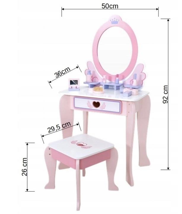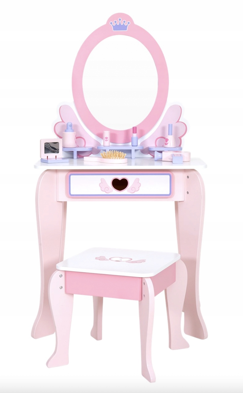 Przepiękny mebel do pokoju Twojego dziecka. Toaletka z lustrem i taborecikiem aby mała Księżniczka mogła zrobić się na bóstwo, naśladując swoją mamę lub siostrę.