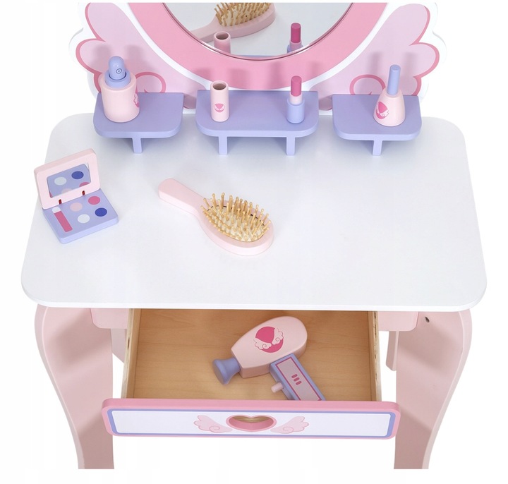 Mała księżniczka może więc śmiało naśladować swoją mamę lub siostrę. Toaletka jest niezwykle stylowa i jest ona kluczowym elementem w pokoju każdej młodej stylistki!