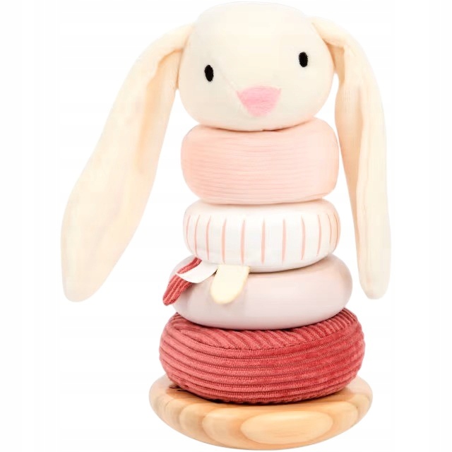 Piramida królik MINI MATTERS rozwija zdolności manualne, koordynację ruchową i logiczne myślenie, a jej pastelowe kolory i bajkowy wzór sprawiają, że będzie również piękną ozdobą pokoju dziecięcego.