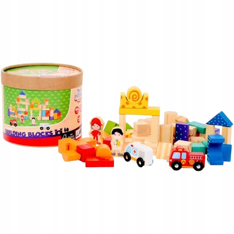 Dzięki temu zestawowi drewnianych klocków maluch w zabawny sposób poznaje kolory i kształty.