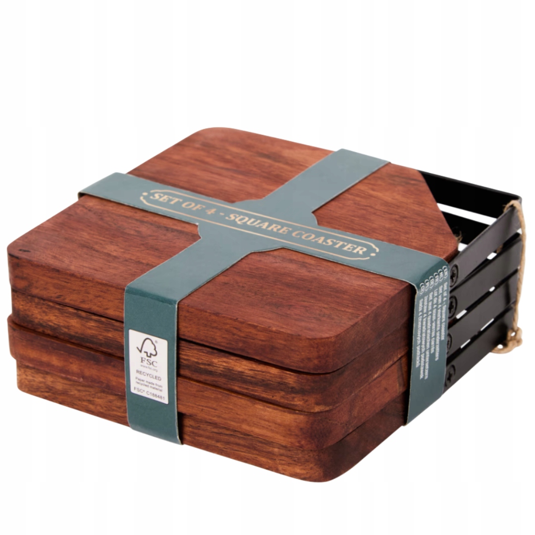 Stylowy zestaw 4 podkładek pod kubki to praktyczne rozwiązanie dla każdego, kto ceni sobie porządek i estetykę przy stole. Wykonane z wytrzymałego drewna z certyfikatem FSC®, podkładki skutecznie chronią powierzchnię stołu przed ciepłem, wilgocią i zarysowaniami.