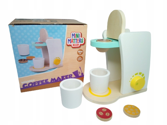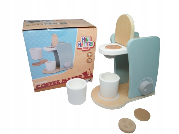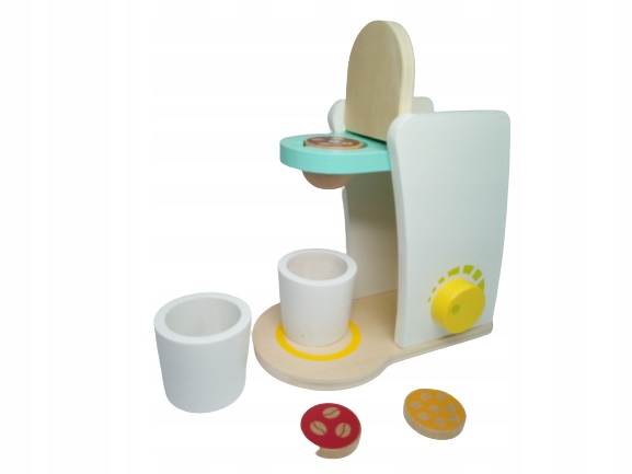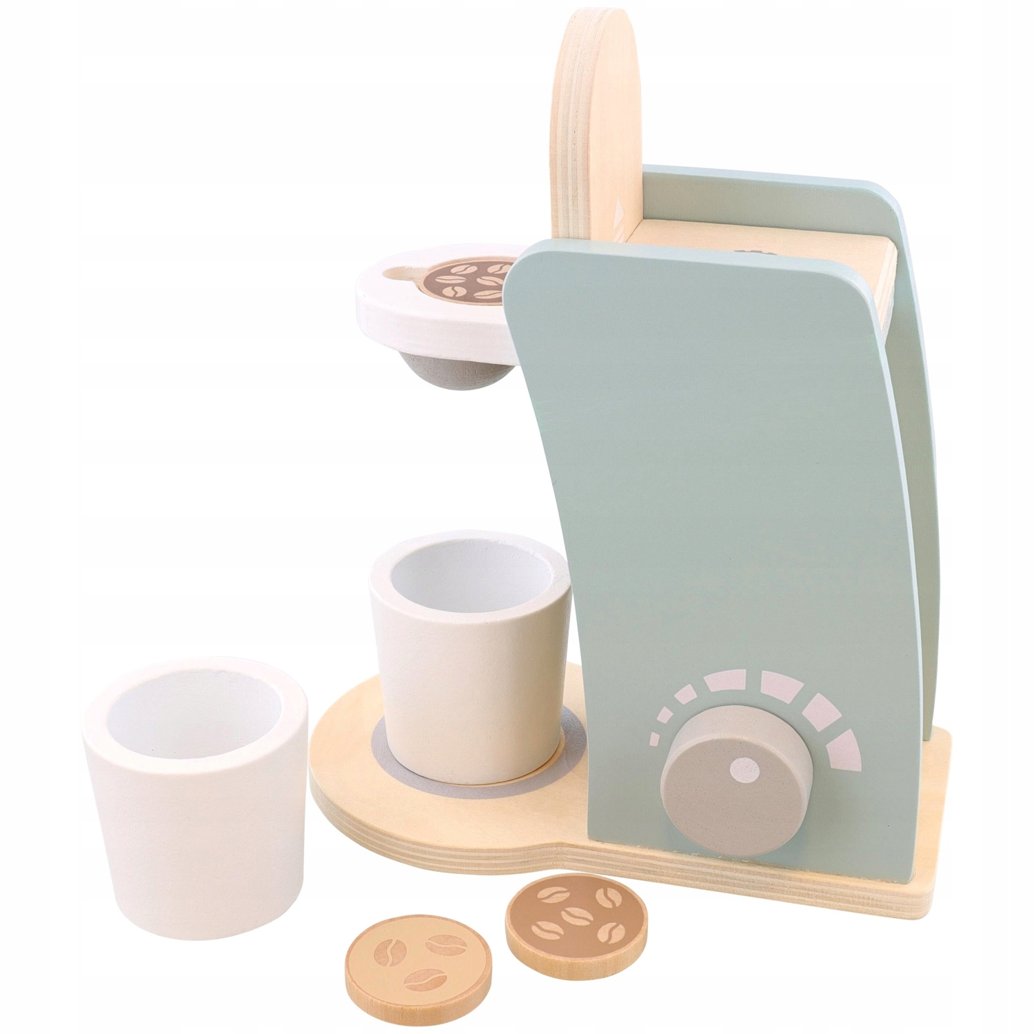 Uzupełnij drewnianą kuchenkę dodatkowymi akcesoriami, takimi jak ekspres.