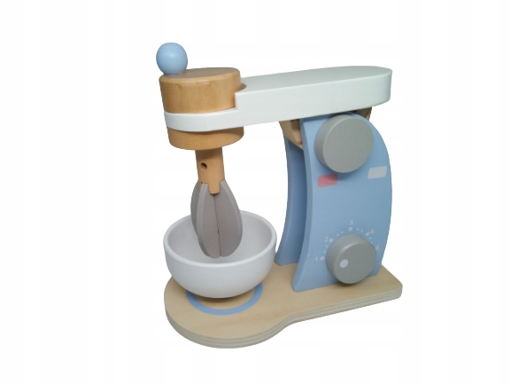 Drewniane zabawki - urządzenia kuchenne: toster, ekspres do kawy i mikser z akcesoriami (m.in. tosty, jako, nożyk, filiżanka).