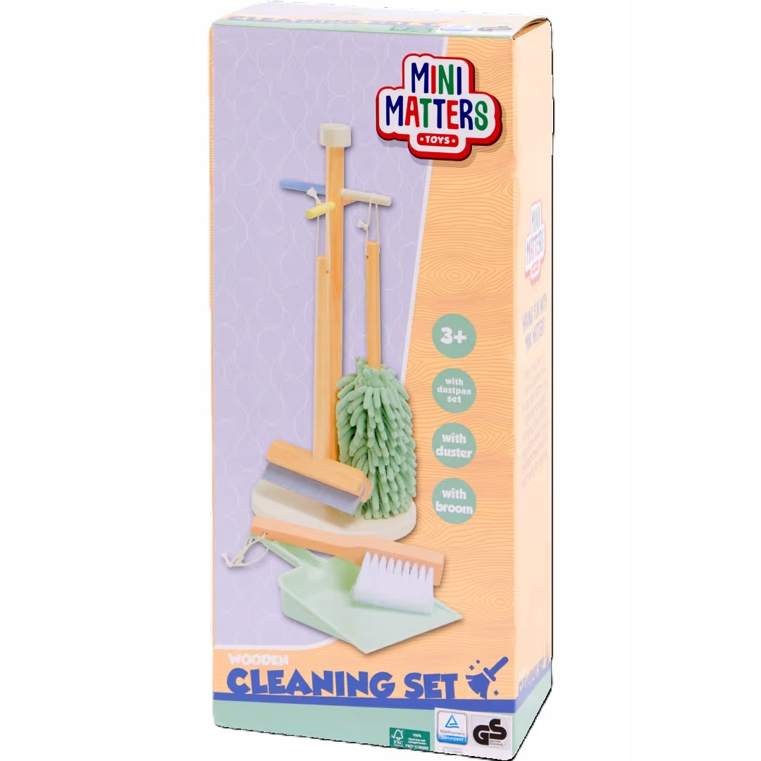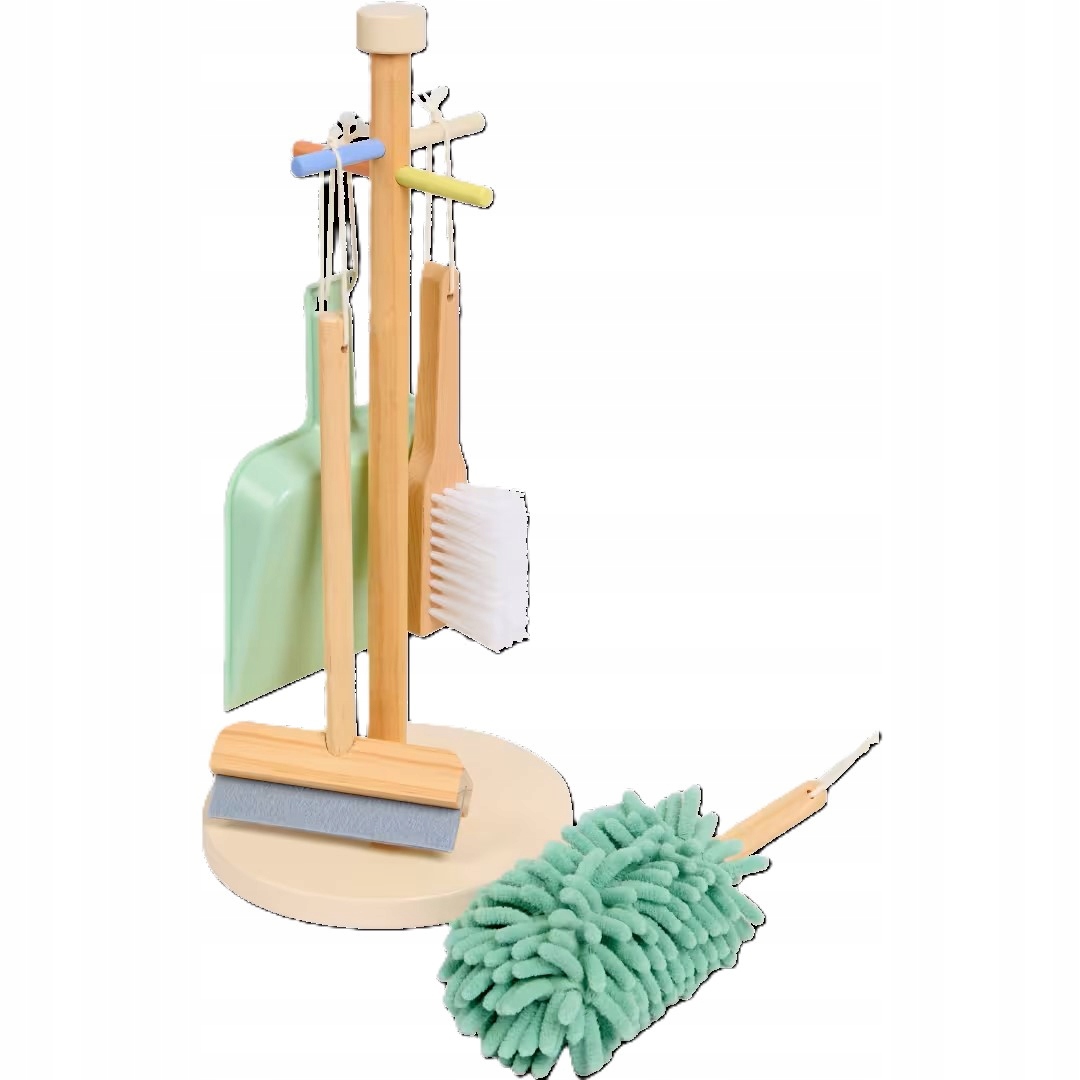 Uwaga, mali pomocnicy! Dzięki temu ładnemu drewnianemu zestawowi do sprzątania dzieci mogą w zabawny sposób nauczyć się porządkowania i sprzątania.