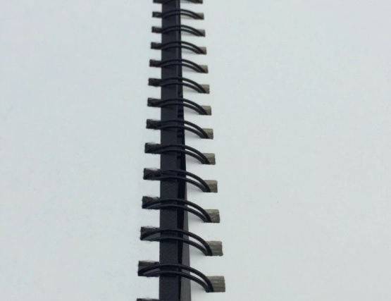 Spirala, na której osadzone są strony wykonana jest z twardego plastiku, przez co nie zgniecie się. Powoduje również, że przekładanie stron jest wygodniejsze i nie wymaga ich przytrzymywania na pełnym otwarciu.