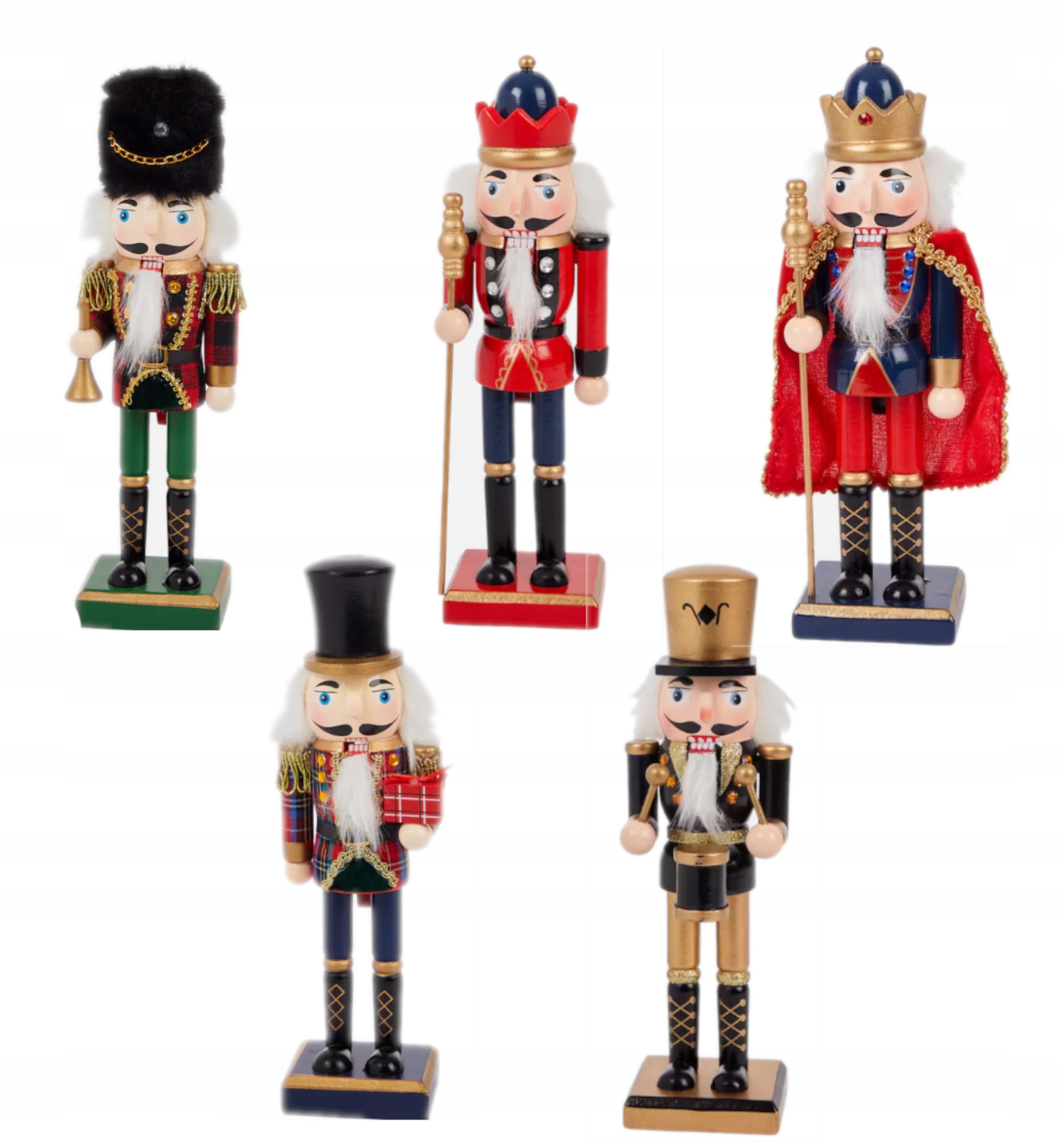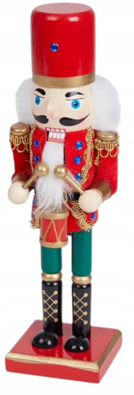 Przepiękne figurki dekoracyjne z dziadkiem do orzechów, idealnie wpisują się w magiczny klimat świąt. Figurka została wykonana z drewna i przepięknie pomalowana. Posiada ruszający się mechanizm ręczny przesuwania szczęki.