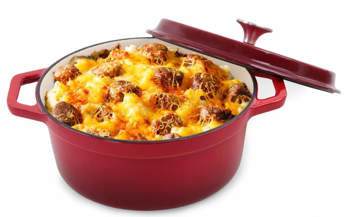 Żeliwne może być intensywnie ogrzewane, aby szybko smażyć i parzyć swój kawałek mięsa, ale jest również idealnym powolnym kuchenka na zimowe gulasze. Patelnia jest emaliowana dookoła, dzięki czemu można ją bez problemu wykorzystać na każdej płycie kuchennej bez uszkodzenia płyty.