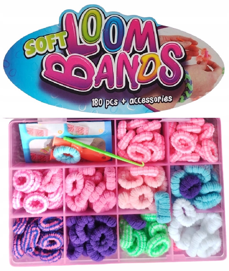 ✅Kreatywny zestaw składający się z 180 gumek do robienia biżuterii zarówno dla dziewczynek jak i chłopców.