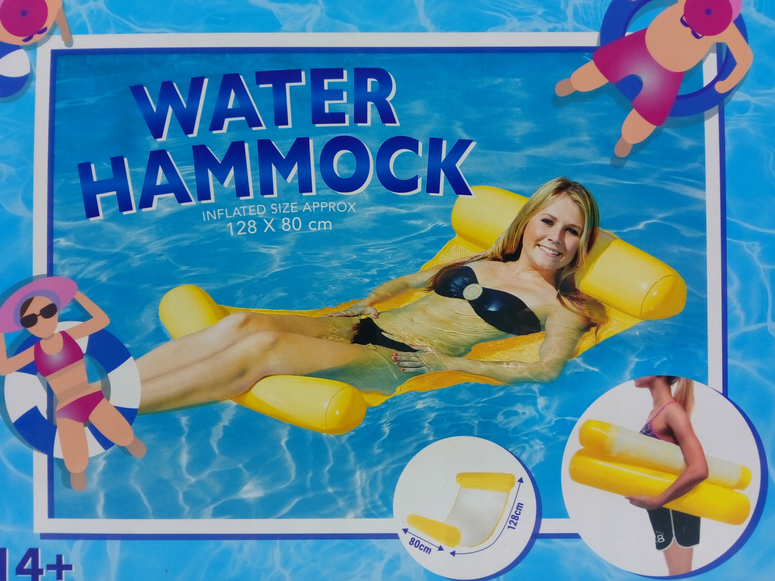 W tym hamaku wygodnie leżysz z głową na zagłówku, a twoje ciało cudownie chłodzi się w wodzie.