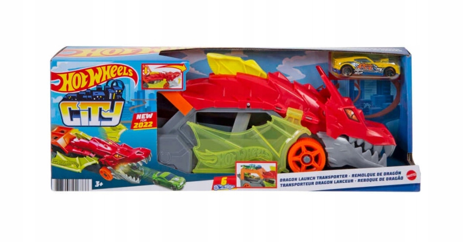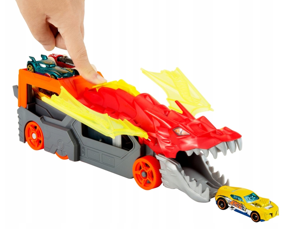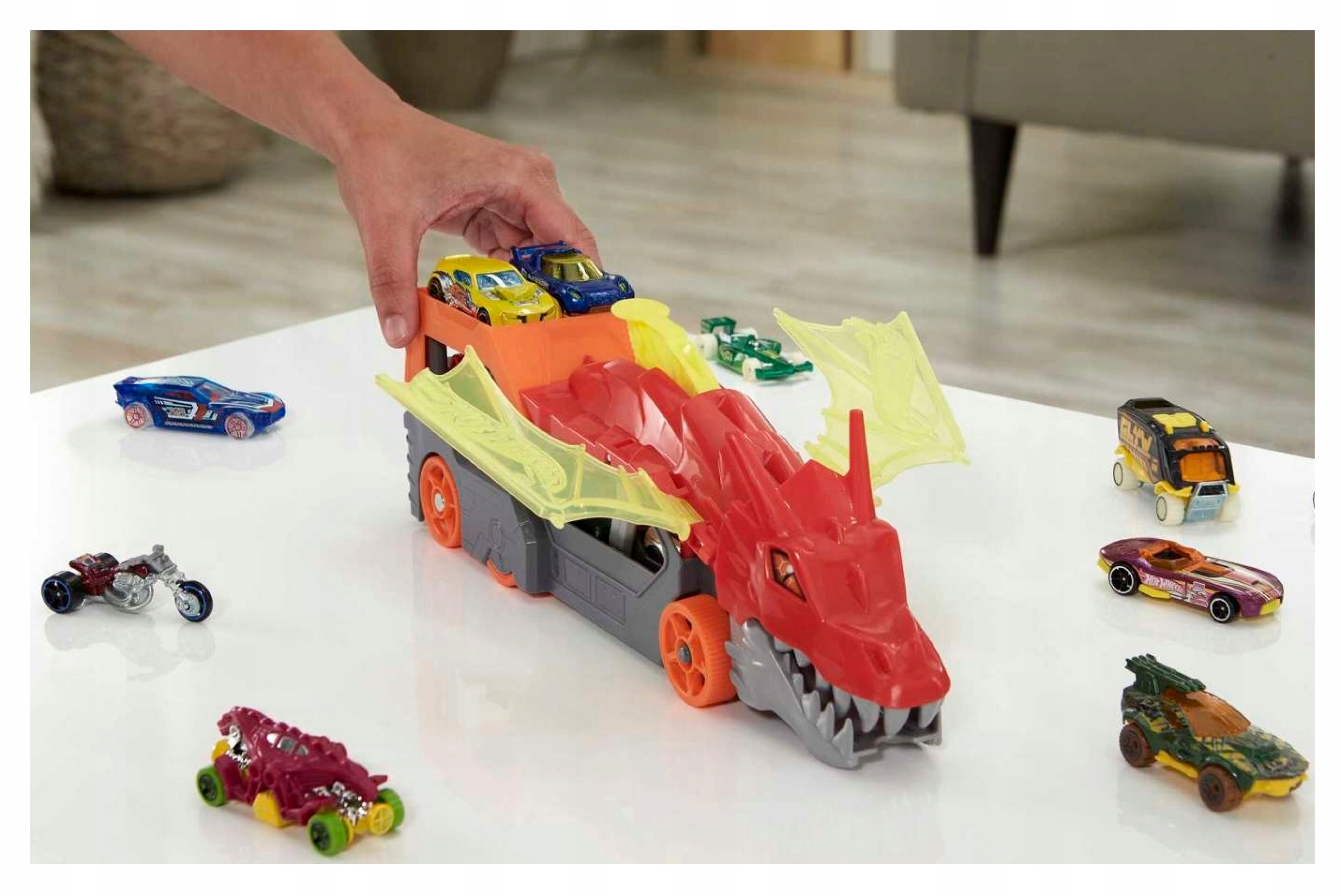 Zestaw do zabawy Hot Wheels Smok Transporter- Wyrzutnia to super ciężarówka do przewożenia samochodzików.