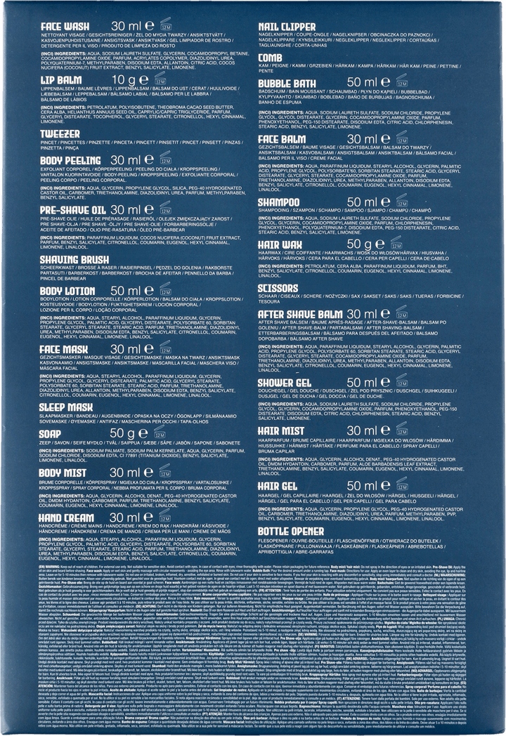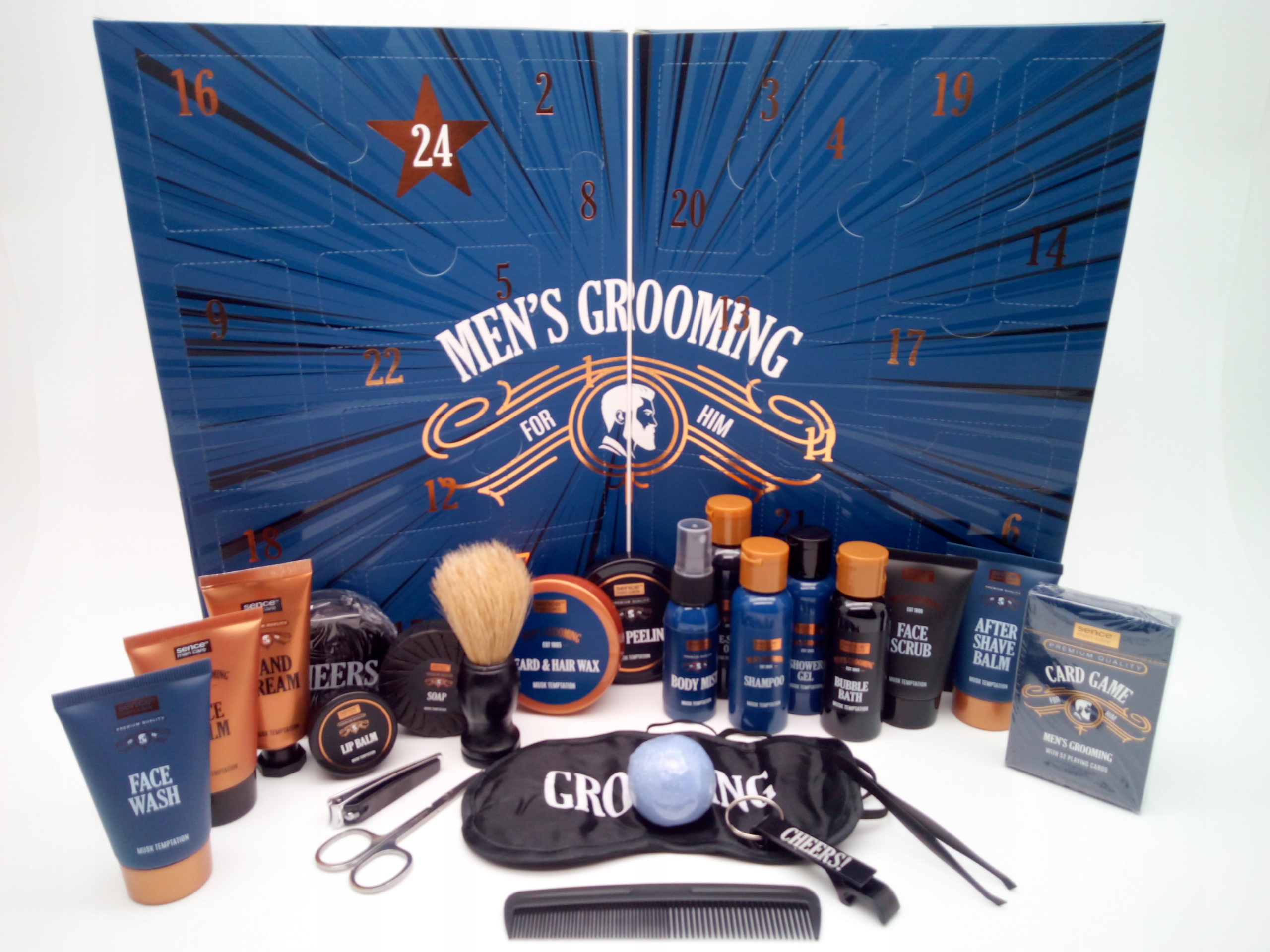 W Kalendarzu znajdują się 24 niespodzianki, w których można znaleźć produkty do pielęgnacji brody, włosów i skóry oraz produkty pod prysznic.
