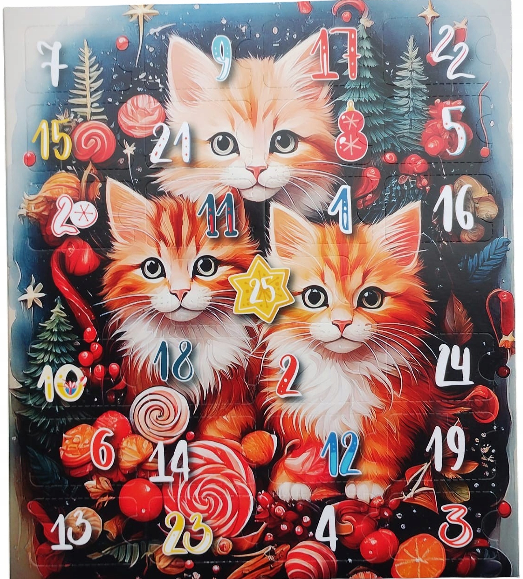 Kalendarz adwentowy dla kotów przysmaki smakołyki 150g