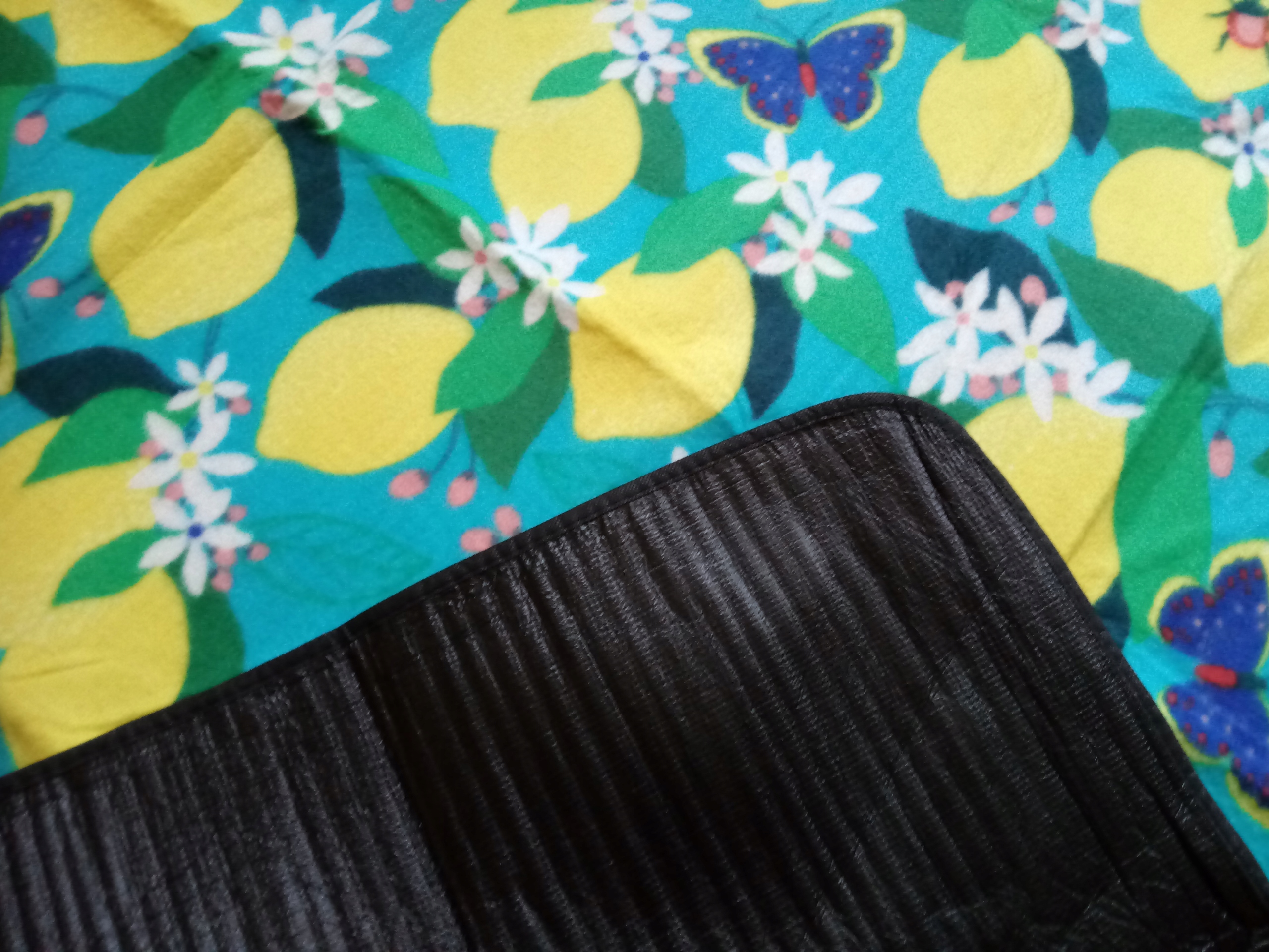 Dzięki zamieszczonej folii koc jest wodoodporny, możesz go położyć na trawie bez obaw, że przemoknie