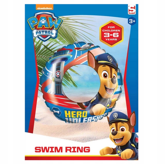 Dmuchane koło do pływania z grafiką ulubionego bohatera bajki PAW PATROL Chase - zapewni bezpieczną zabawę, pobudzi wyobraźnię i pozwoli odpocząć.
