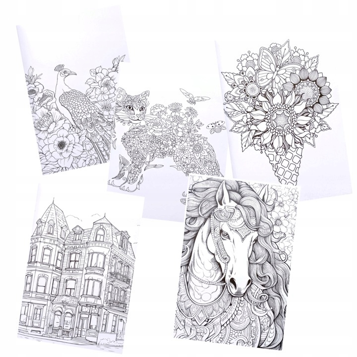 ✔️ Różnorodne motywy rysunków np. kwiaty, zwierzęta, postacie, budynki etc.