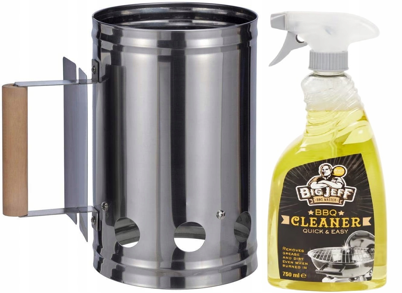 Dzięki tym akcesoriom do grilla BIG JEFF rozpalanie węgla do grilla lub brykietów znacznie wygodniej i szybciej. W górnej części grilla daje się paliwo, takie jak węgiel drzewny lub brykiet. Gdy tylko starter znajdzie się na ogniotrwałym podłożu, w dolnej części zapala się nieco łatwopalny jak papier gazetowy lub kuchenny. Dzięki działaniu kominowemu ciepło jest szybciej przenoszone do góry, co równomiernie podgrzewa węgiel. Po ok. 15 minut, gdy górna warstwa węgla drzewnego jest pokryta biało-szarą, materiał można wsypać do grilla. Dzięki podpałce do grilla uzyskasz równomiernie przegrzewany węgiel drzewny lub brykiety. Bezpieczny i przyjazny dla środowiska sposób na ogień, nie są potrzebne przyspieszacze ognia Uchwyt rozpalarki do grilla jest wykonany z drewna, który zapewnia pewny chwyt i nie nagrzewa się tak bardzo jak korpus ze stali