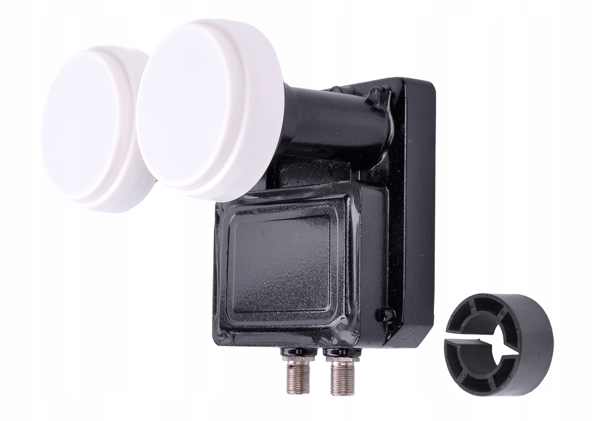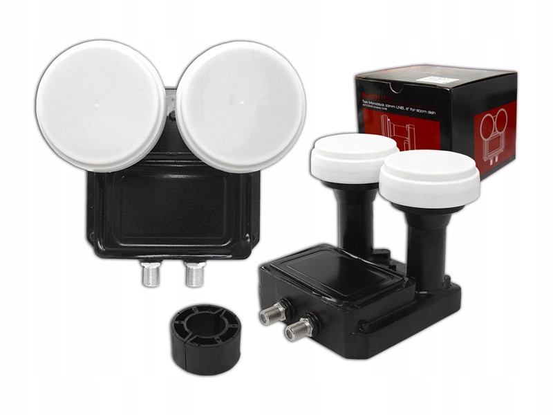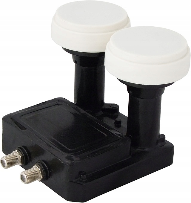 Konwerter Twin Monoblok INVERTO. Możliwość podłączenia niezależnie dwóch pracujących tunerów. Monoblock twin dostarcza sygnał satelitarny dla dwóch jedno głowicowych tunerów ( Czyli oglądasz na każdym tunerze niezależne dwie satelity), lub jednego tunera dwu głowicowego PVR. Główny konwerter (w centrum), należy ustawić do odbioru sygnału HOTBIRD. Po ustawieniu anteny do odbioru sygnału z HOTBIRDA, sygnał z satelity ASTRA będzie dostępny automatycznie. Do przełączenia konwertera w celu odbioru z satelity ASTRA, konieczny jest sygnał DiSEqC generowany z tunera. Poziom szumów 0,2dB.