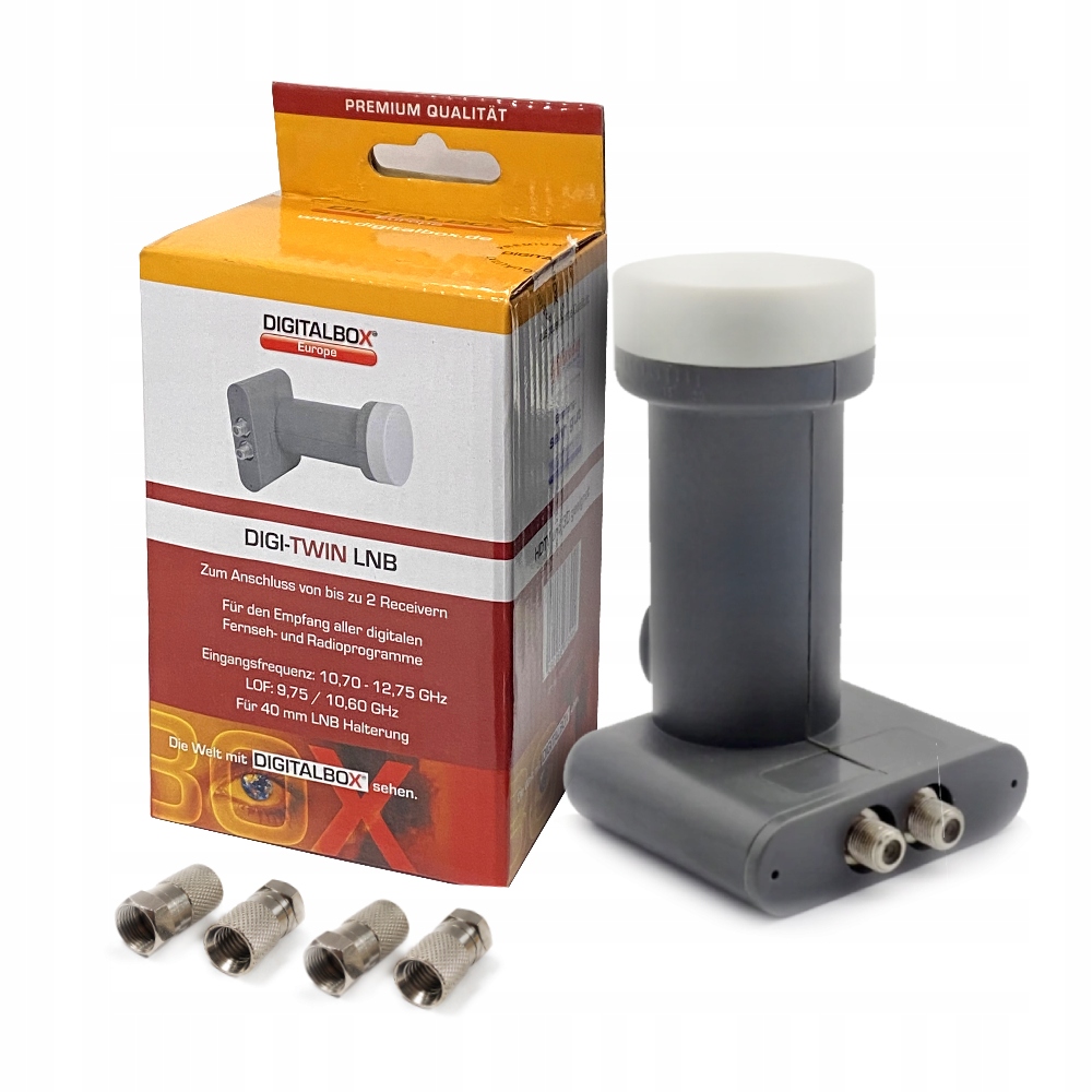 Twin LNB firmy DigitalBOX charakteryzuje się doskonałymi właściwościami odbioru przy niskim poziomie szumów i poborze mocy.