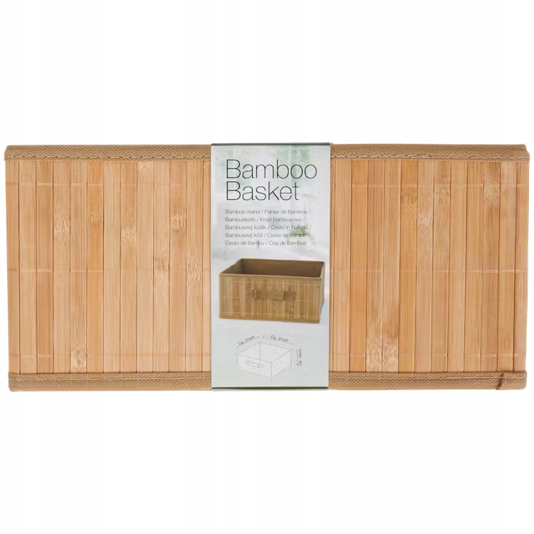 KOSZ BAMBUSOWY DO PRZECHOWYWANIA SKŁADANY PUDEŁKO POJEMNIK BOX 31x31x14 cmKOSZ BAMBUSOWY DO PRZECHOWYWANIA SKŁADANY PUDEŁKO POJEMNIK BOX 31x31x14 cm