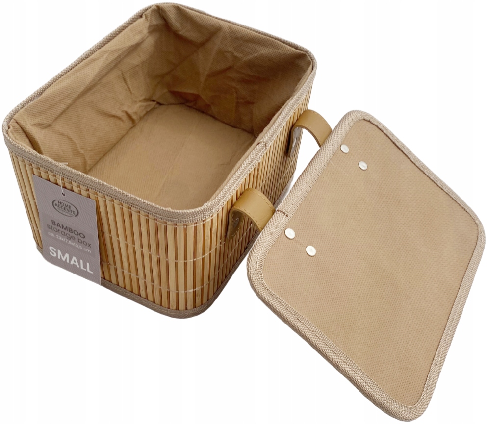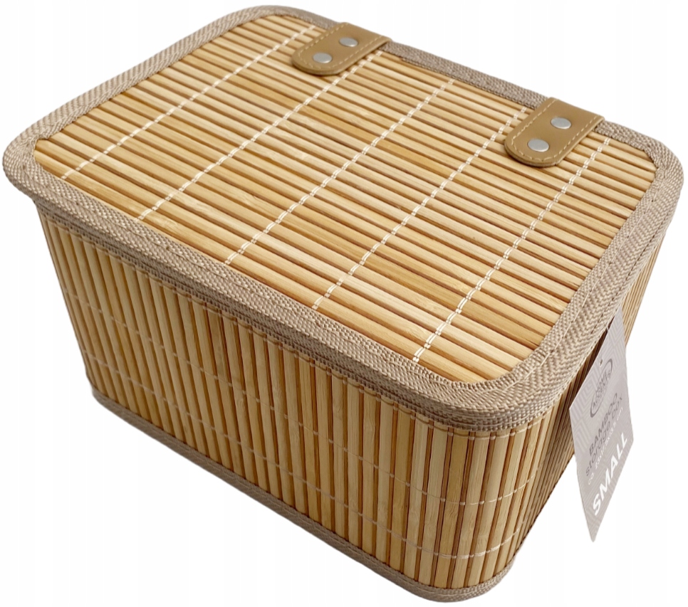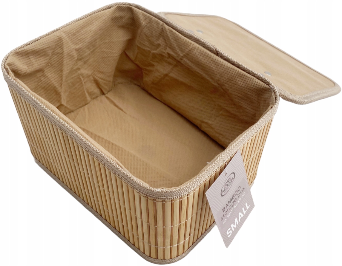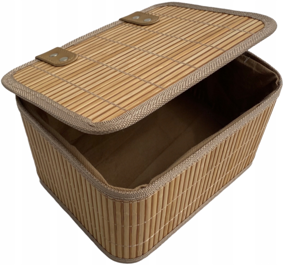 ✅ Bambusowy kosz wyłożony tkaniną.