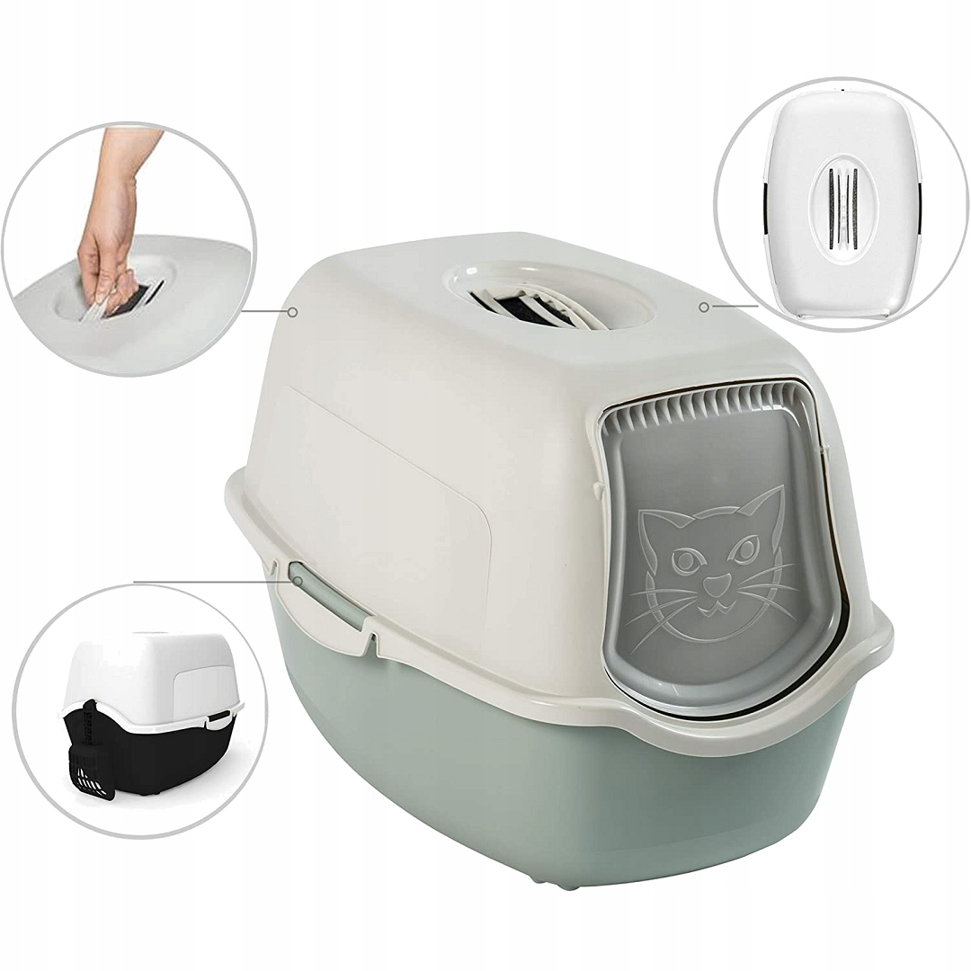 Praktyczna i estetyczna dwukolorowa kuweta dla kota szwajcarskiej marki Rotho. Zabudowana konstrukcja kuwety zapobiega rozsypywaniu się żwirku a wbudowany filtr węglowy pochłania nieprzyjemne zapachy. Zaczepy po obu stronach pokrywy sprawiają, że toaleta jest niezwykle łatwa w montażu, a jej czyszczenie nie sprawia kłopotu. Wygodne wejście zapewnia kotu bezproblemowe korzystanie z toalety. Poręczny uchwyt ułatwia jej przenoszenie.