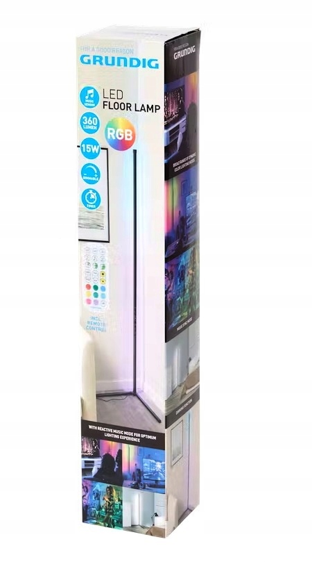 LAMPA STOJĄCA PODŁOGOWA NAROŻNA LED 15 W GRUNDIG RGD+ pilot