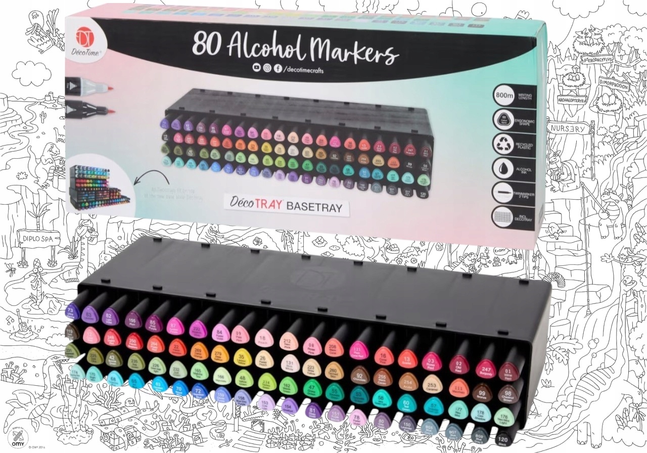 Wspaniały zestaw MARKERÓW ALKOHOLOWYCH 80 sztuk do kolorowanek, malowania i rysowania. Jest wymarzonym prezentem dla dziecka.