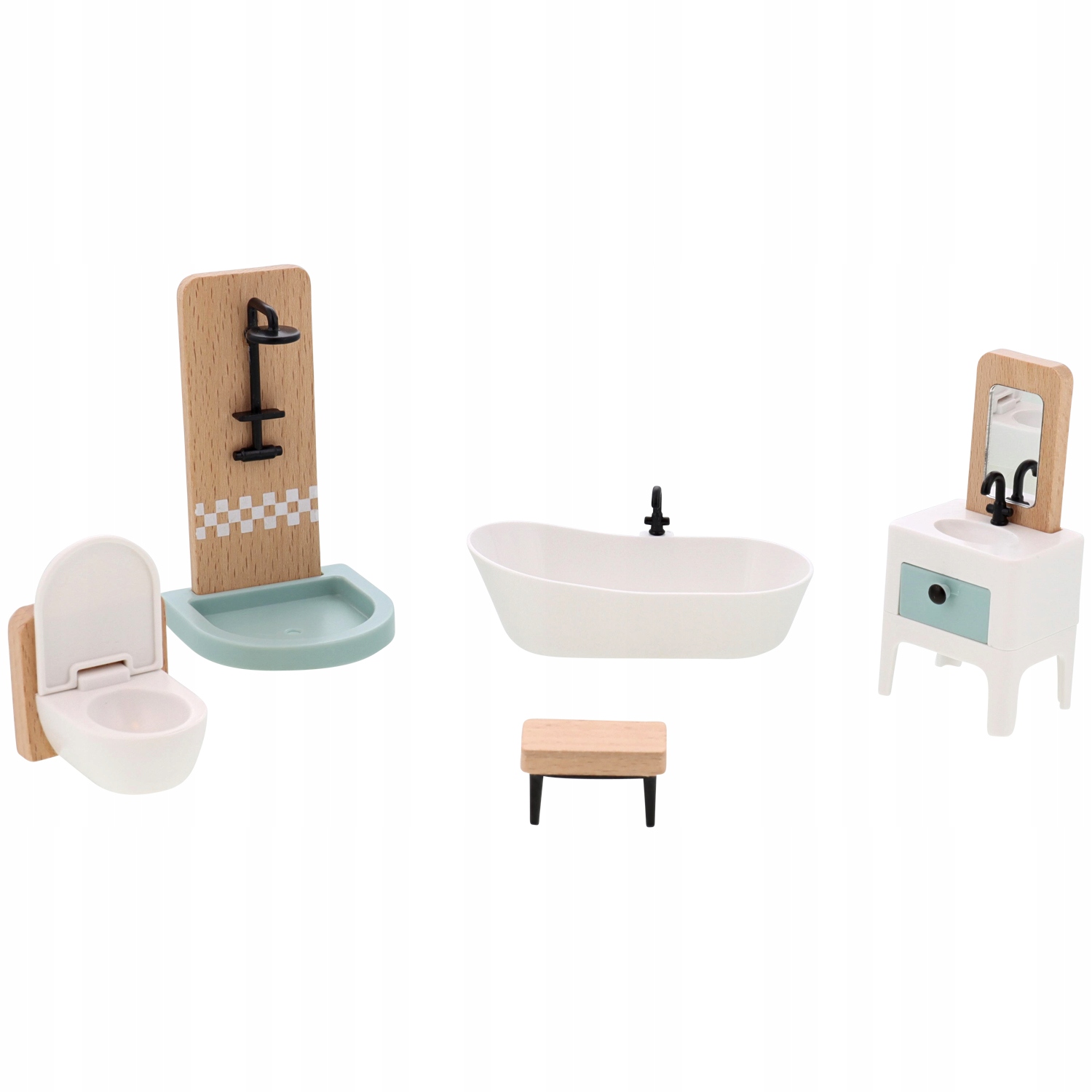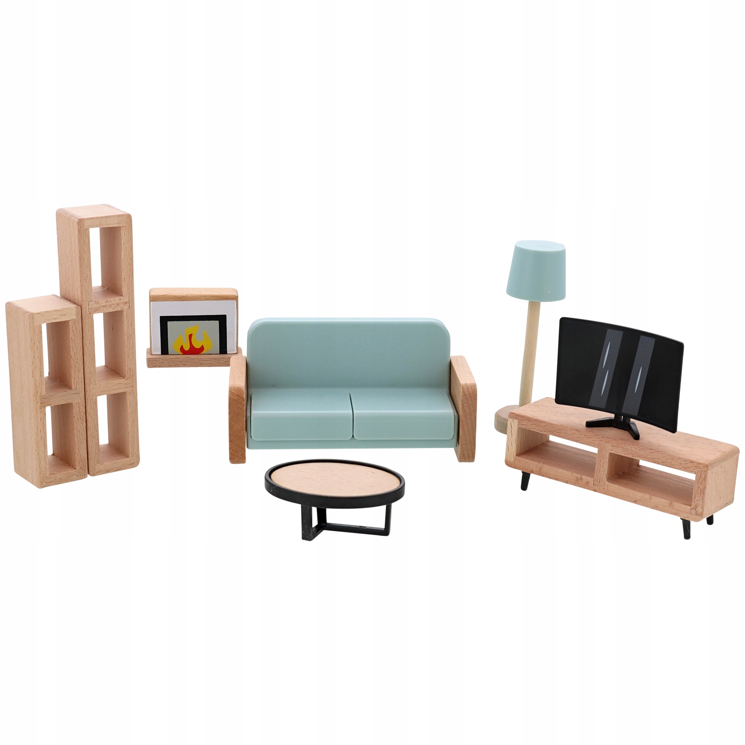Uzupełnij wystrój domu dla lalek drewnianymi meblami, które pięknie udekorują każdy pokój.