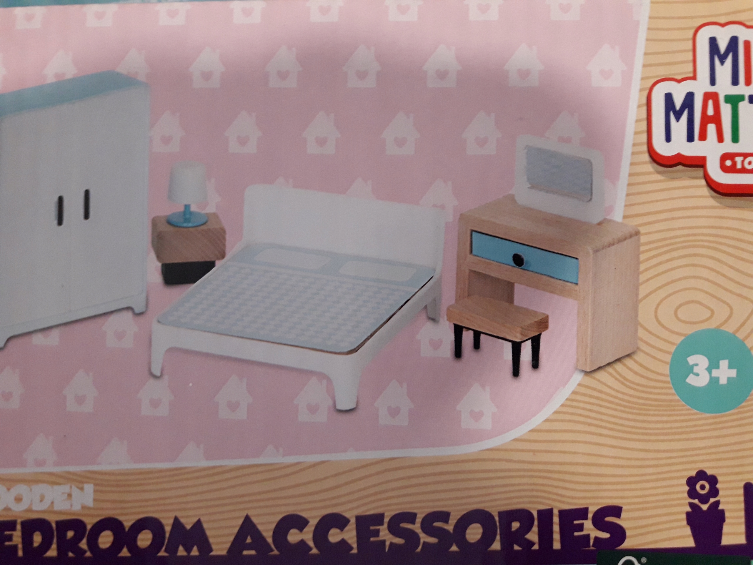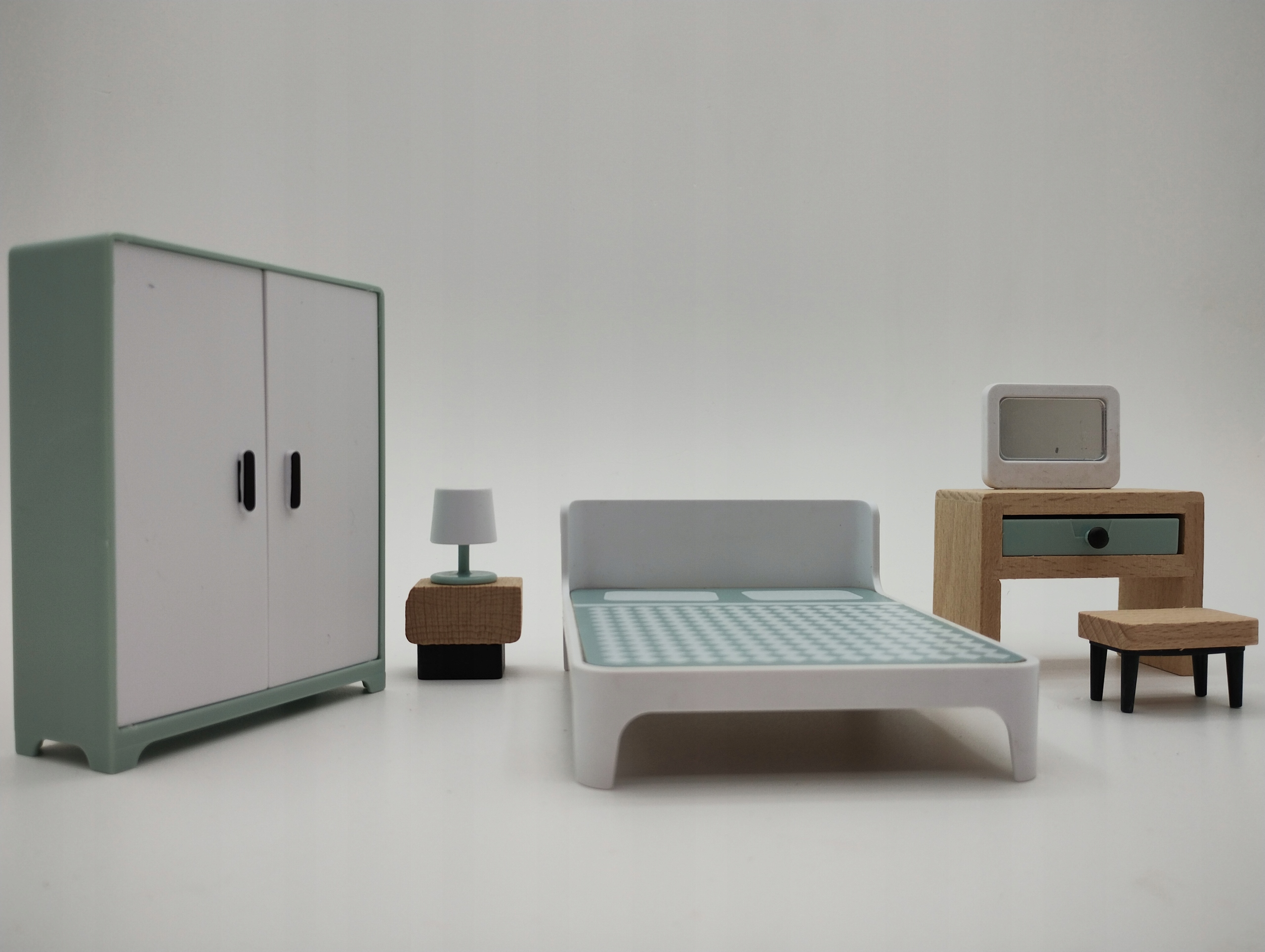 Drewniane mebelki do domku dla lalek Sypialnia MINI MATTERS Junior 3+ Drewniane mebelki do domku dla lalek.