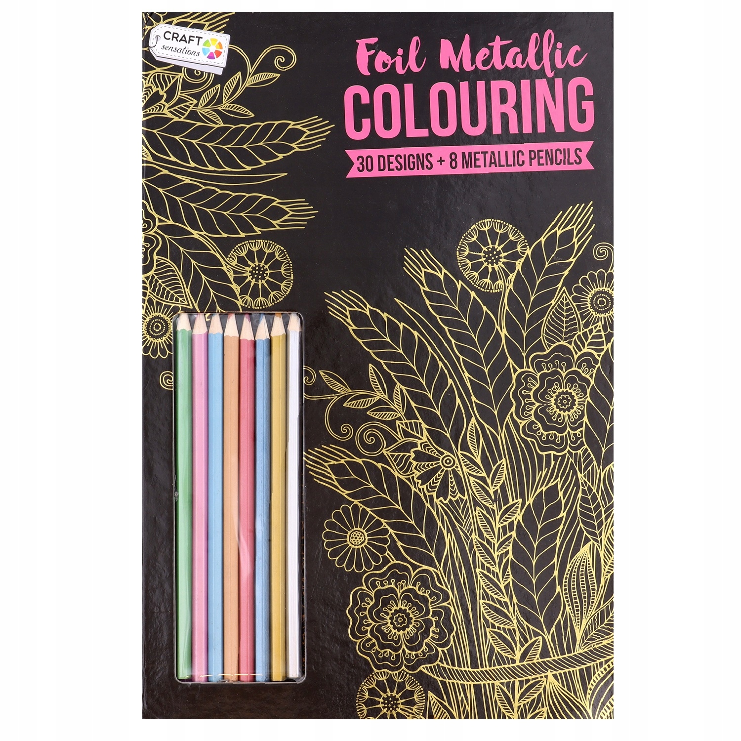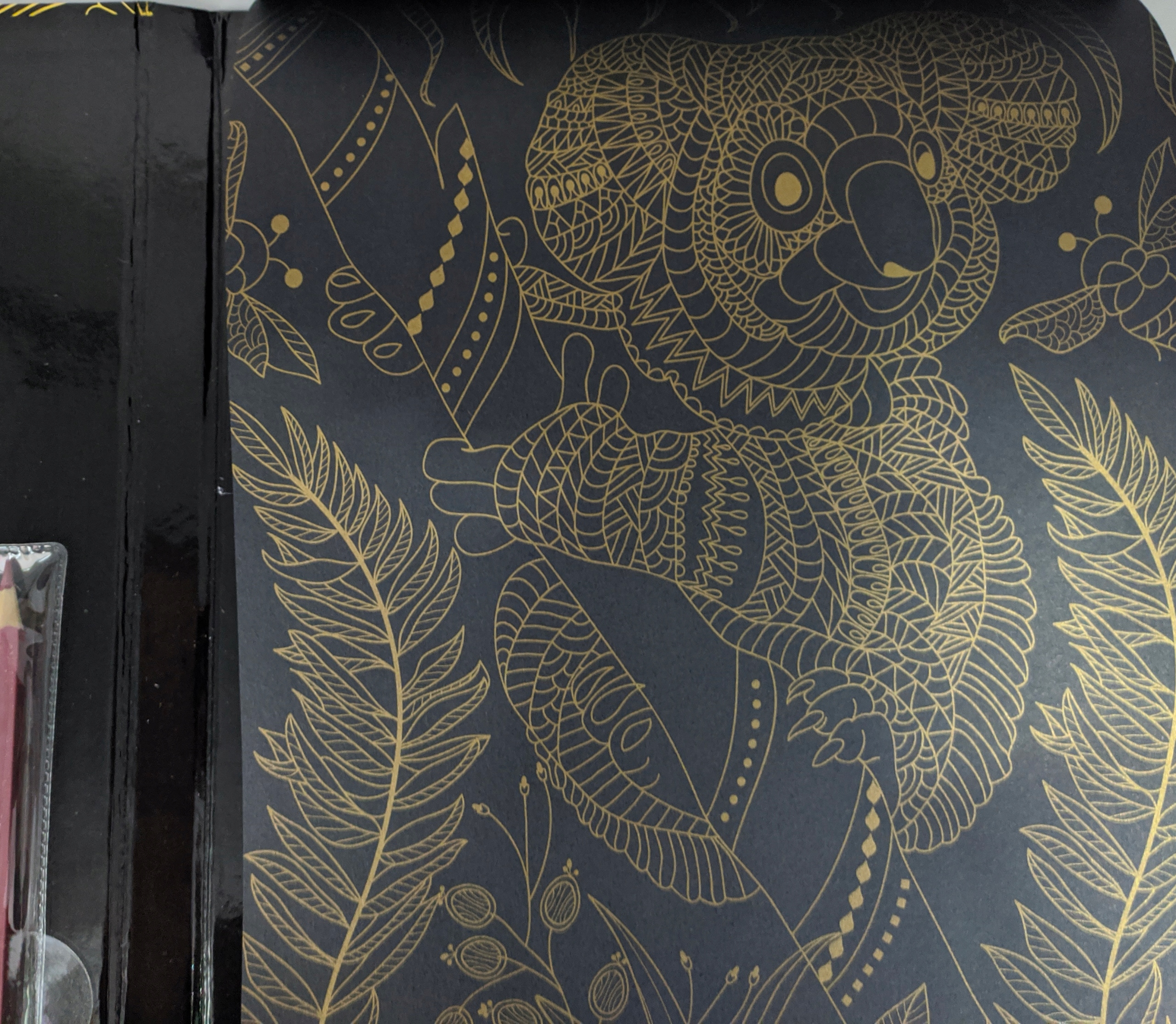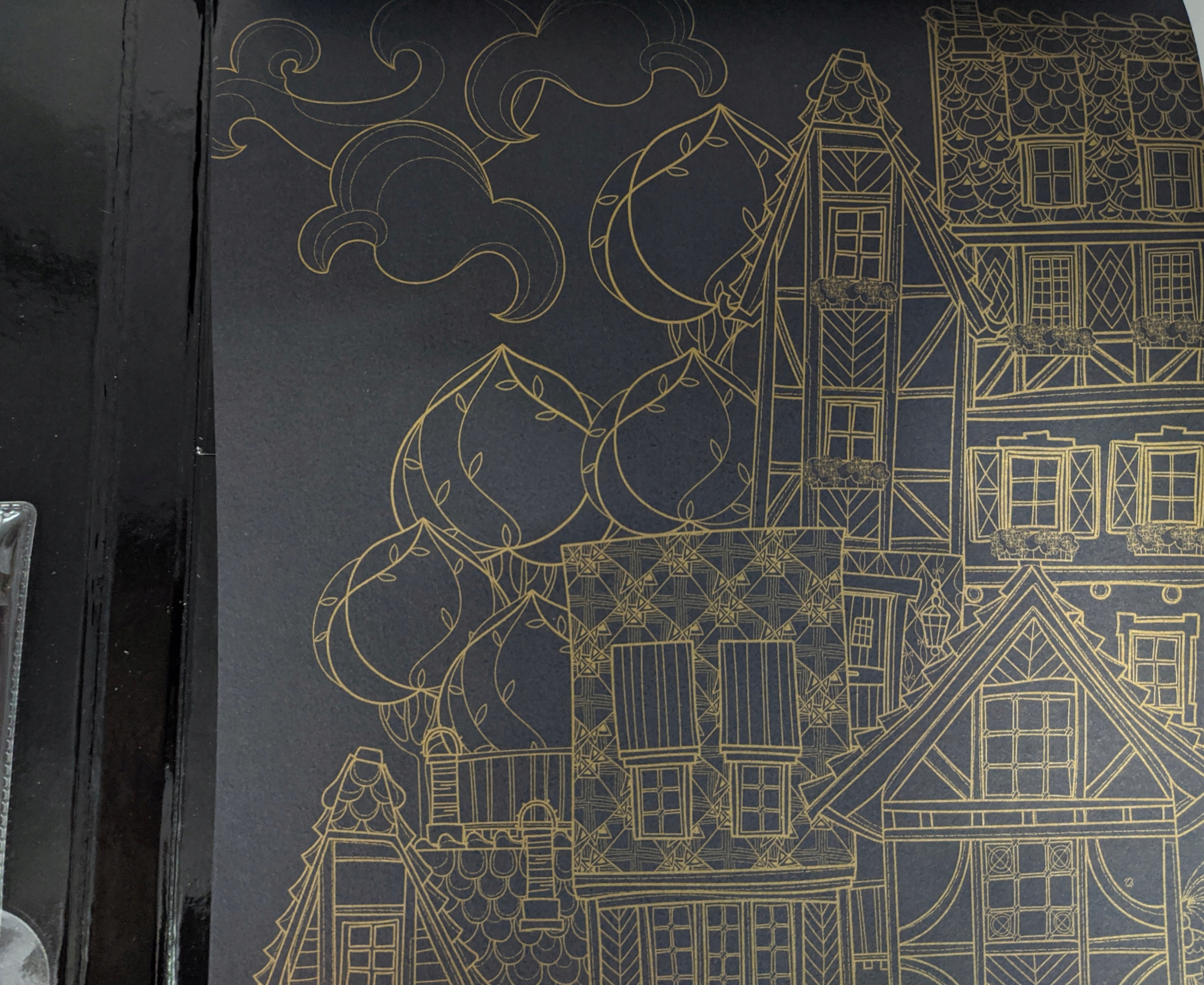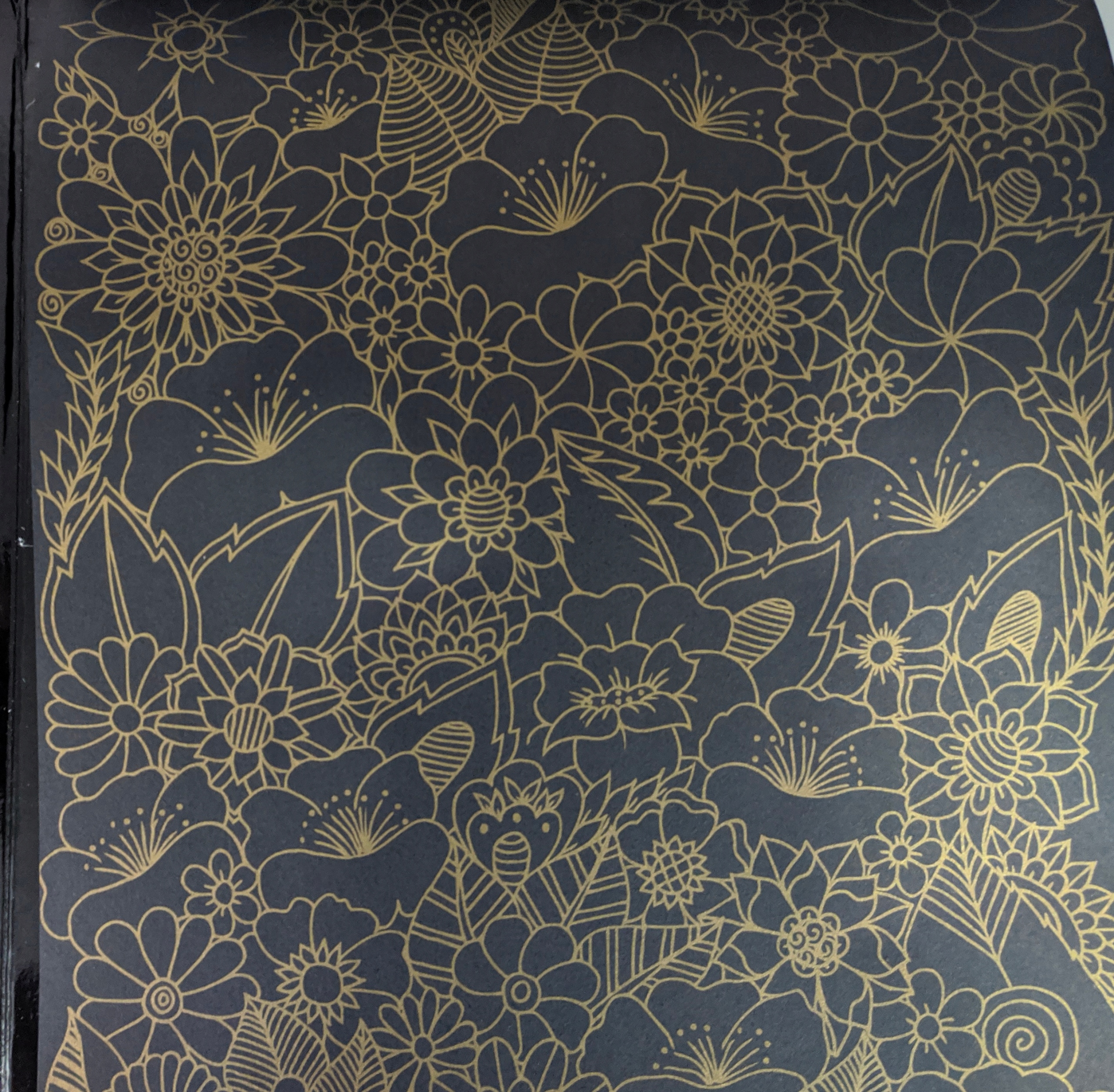 30 czarnych jednostronnych arkuszy do kolorowania, ze złotymi, metalicznymi konturami