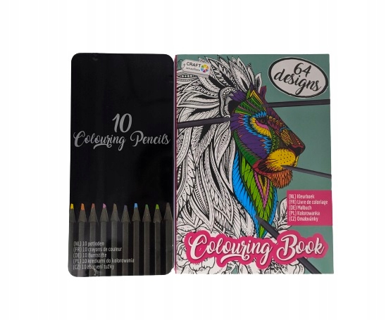 Wszystko umieszczone w sztywnym etui z twardej oprawy, możesz dzięki temu kolorować w każdym miejscu (elementy można z niego wysuwać)