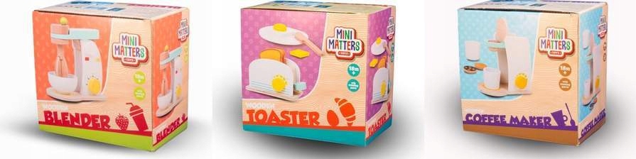 Zabawki zostały zaprojektowane z myślą o najmłodszych i charakteryzują się wysoką jakością. Produkty mają pobudzać wyobraźnię najmłodszych, stymulować proces uczenia i eksperymentowania poprzez zabawę. Wszystkie produkty spełniają międzynarodowe standardy jakości i bezpieczeństwa. Drewniane zabawki posiadają certyfikat TüV/GS, a ponadto wykonano je z kontrolowanego drewna FSC, pochodzącego z ekologicznych upraw. Wybierając zabawki Mini Matters nie tylko zapewnisz dzieciom radość za rozsądną cenę, ale też przyczynisz się do ochrony środowiska.