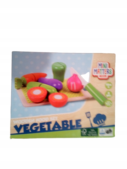 Pociechy które wyjątkowo lubią obserwować co się dzieję w kuchni mogą spróbować swoich sił na drewnianej desce z warzywami, których części połączone są za pomocą rzepa.