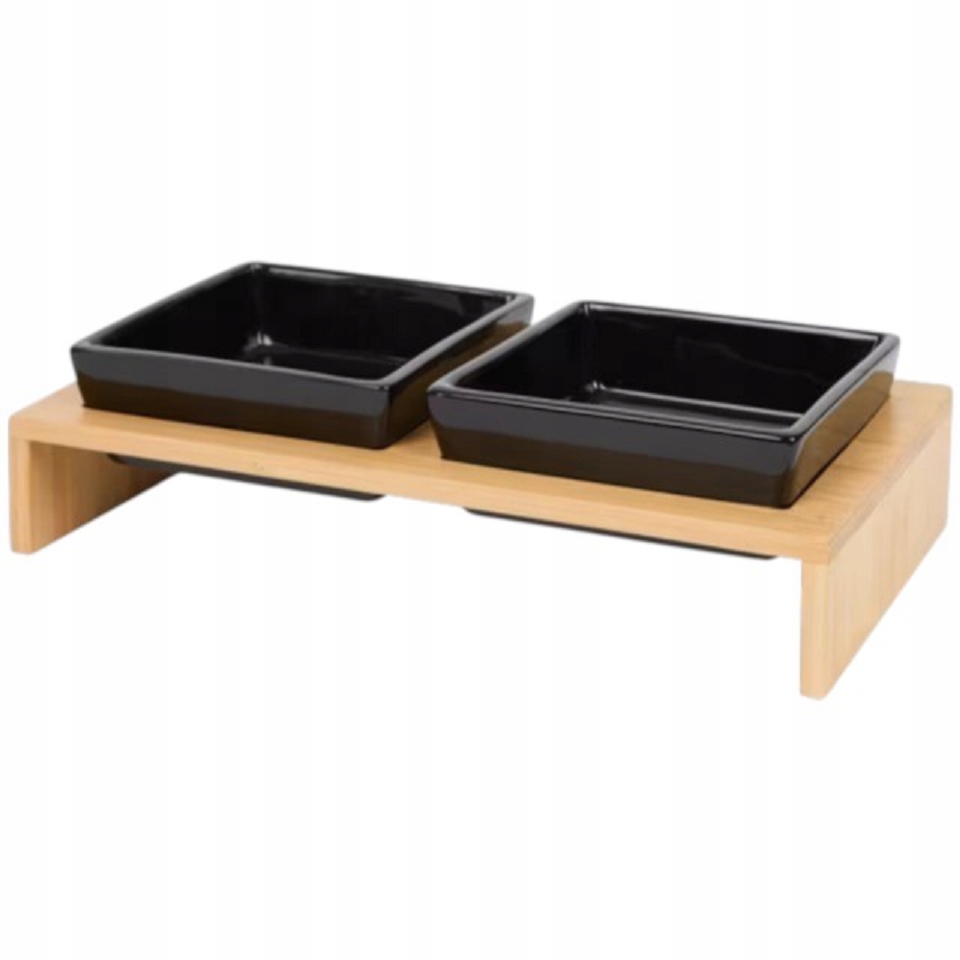 Miski można myć w zmywarce, a drewniany stojak wystarczy przetrzeć wilgotną ściereczką.