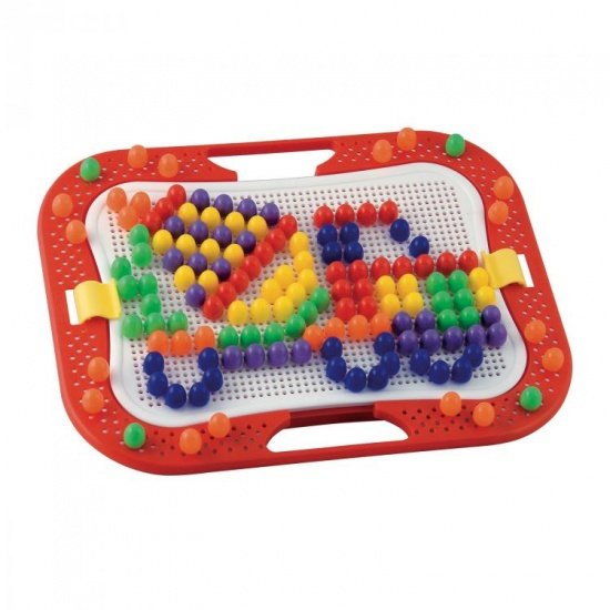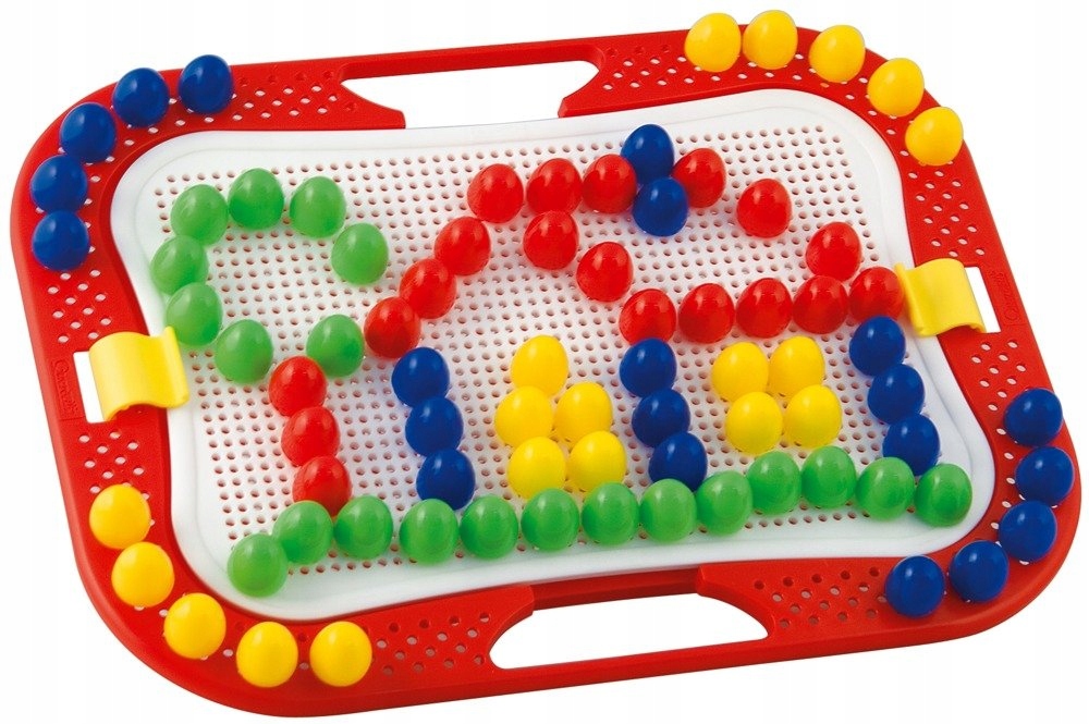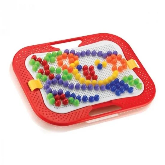 Tworzenie mozaiki poprzez wstawianie kołeczków w perforowaną tablicę zgodnie z proponowanym wzorem bądź własną wyobraźnią jest wspaniałą i twórczą zabawą.