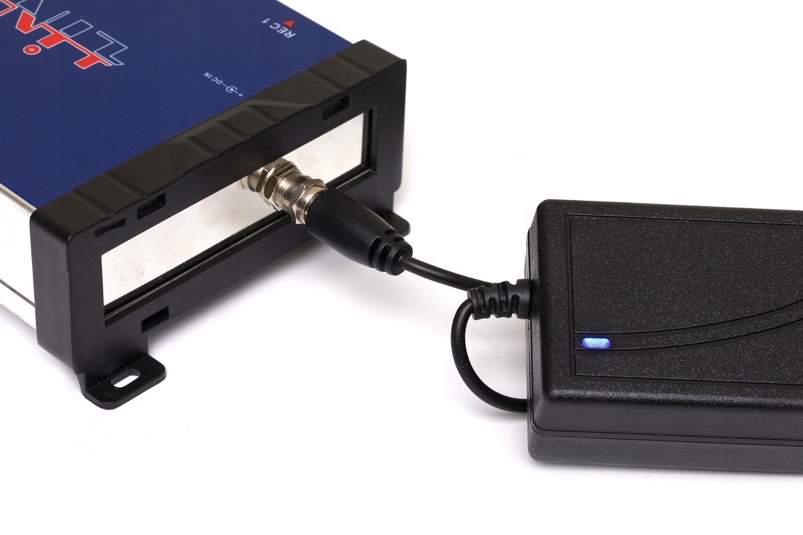W zestawie zasilacz 18V 3A z końcówką typu F. Świecąca dioda na zasilaczu świadczy o prawidłowym zasilaniu multiswitcha.